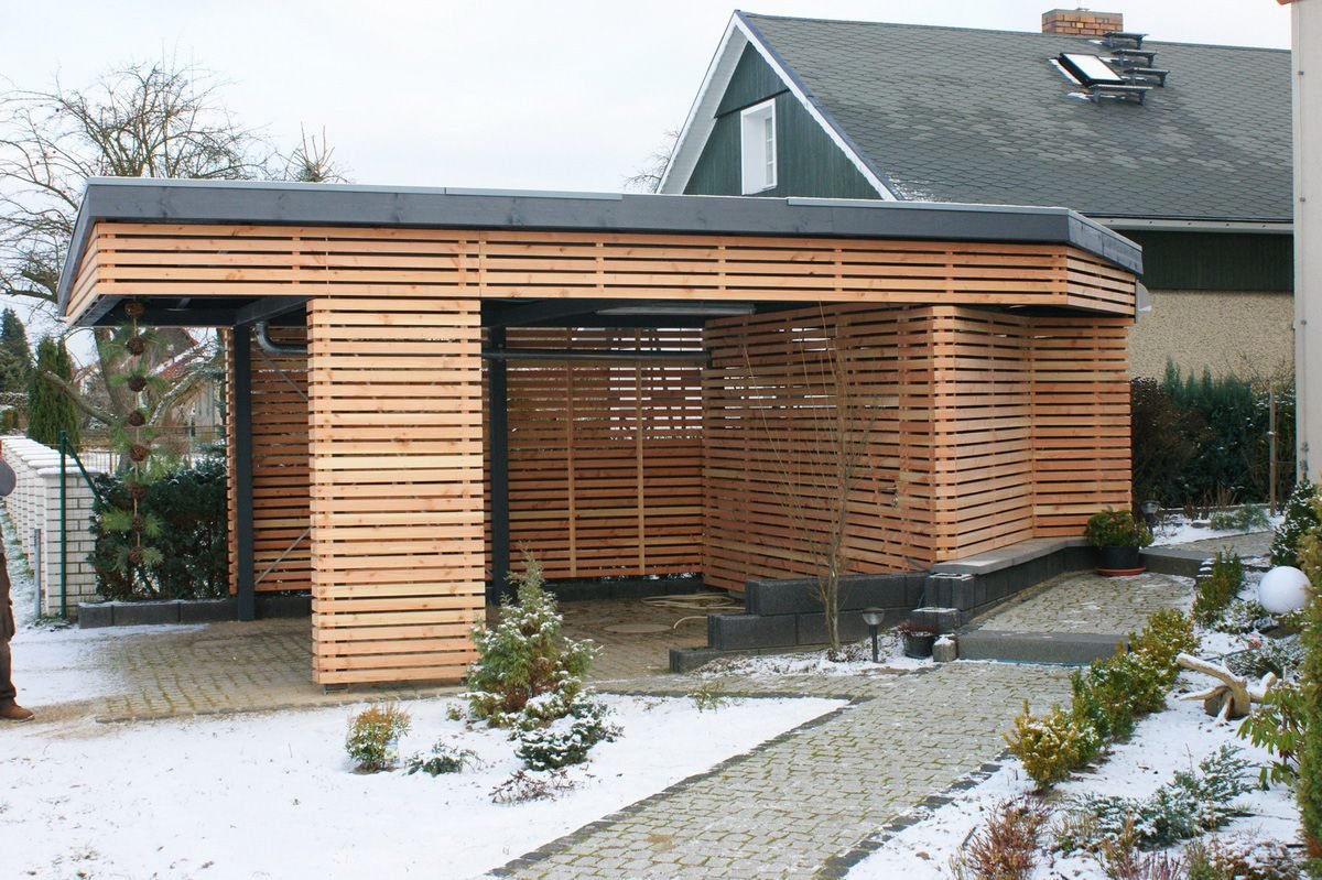 Гараж с навесом под одной крышей