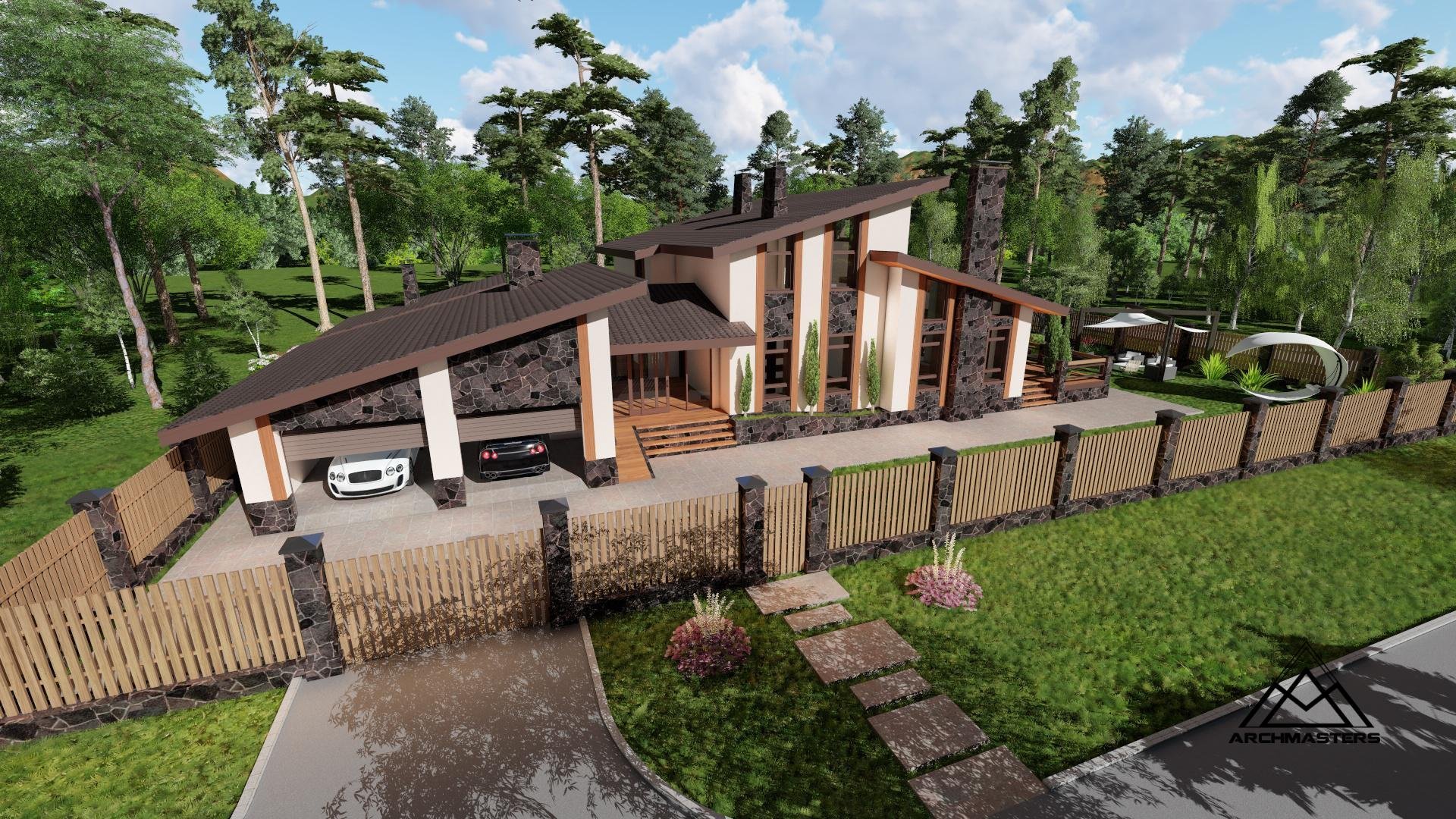 Дом с гаражом и беседкой