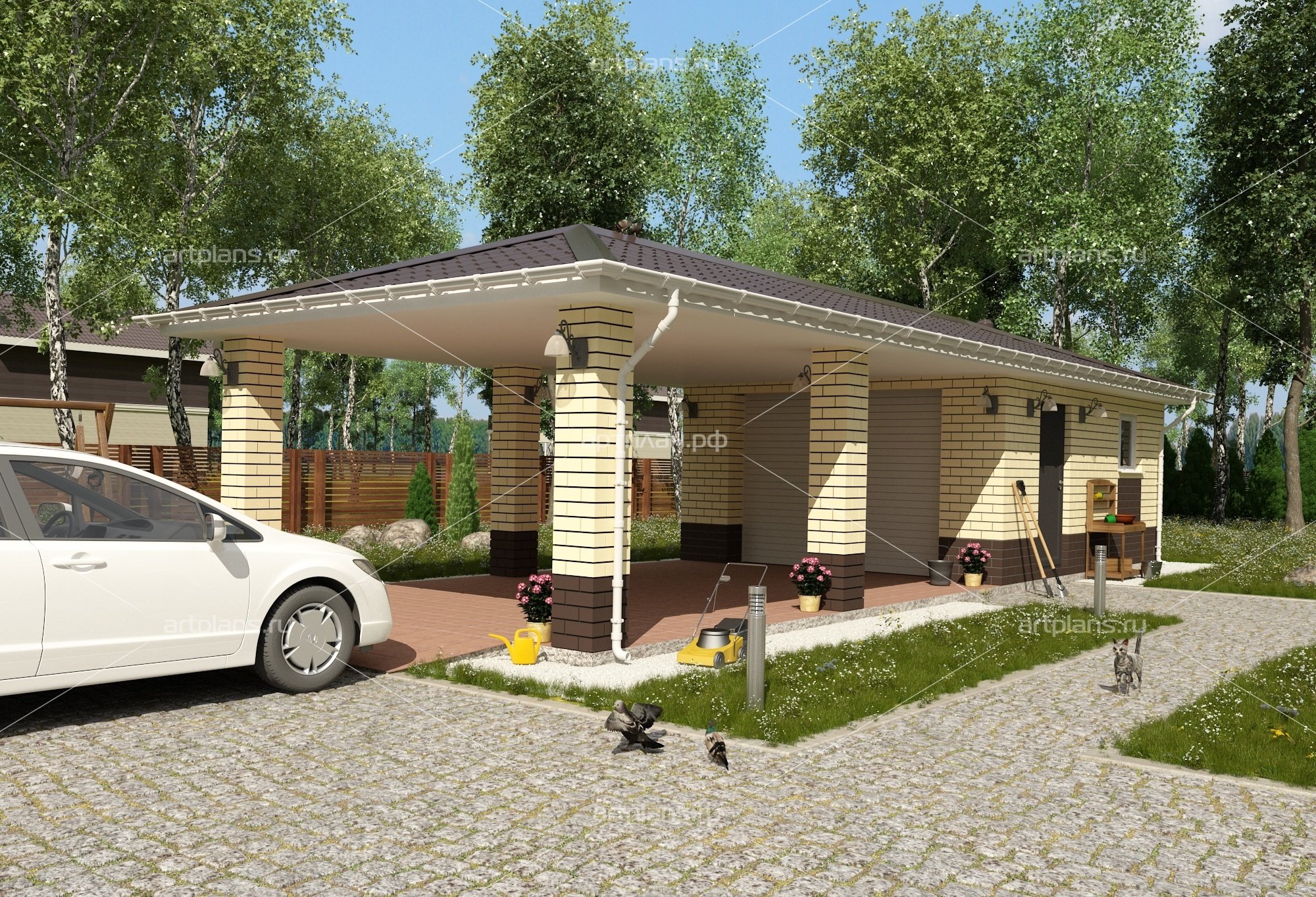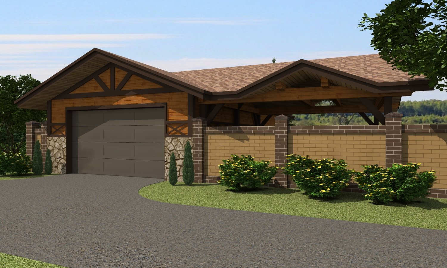 Проект гаража с навесом