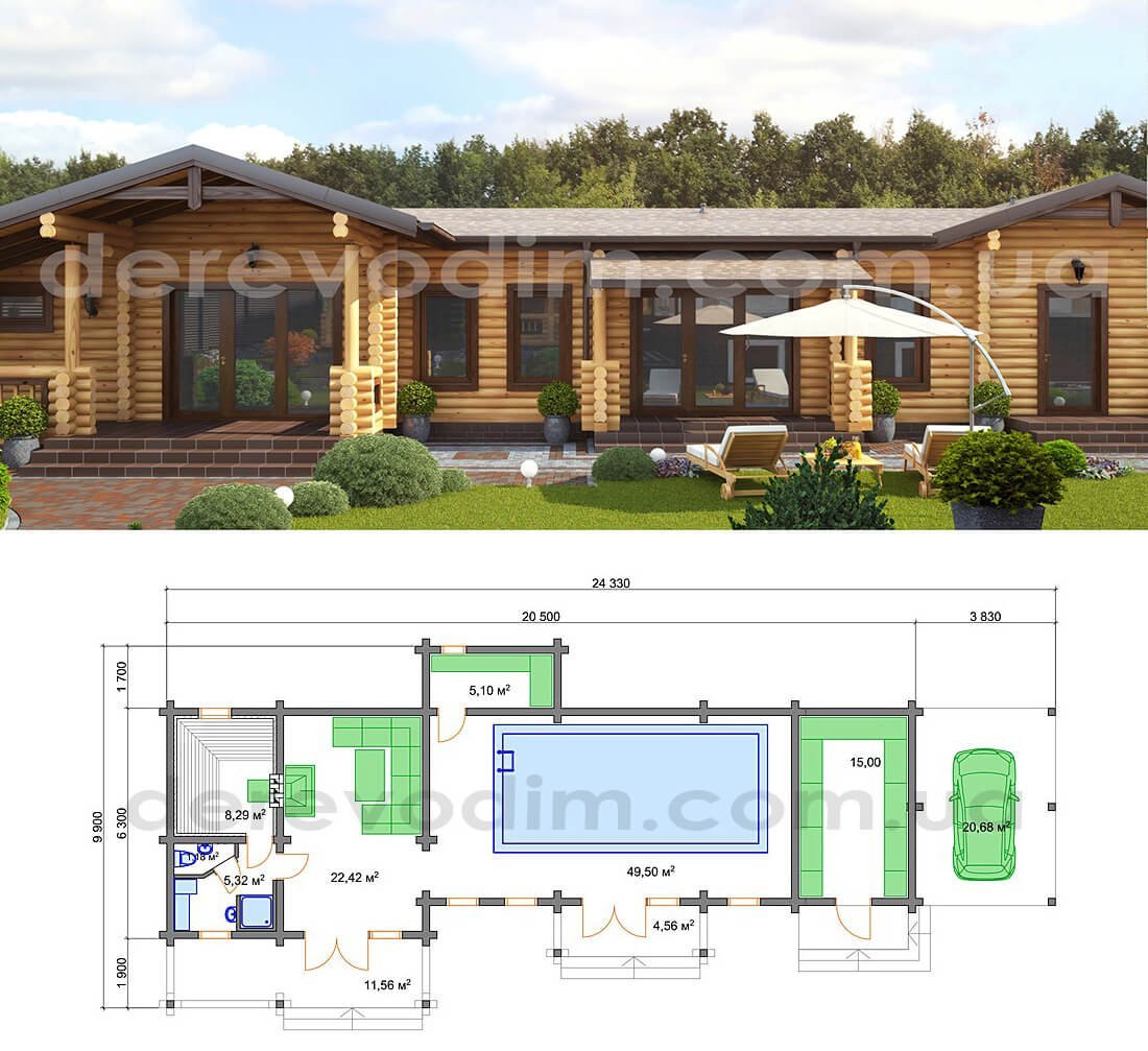 Одноэтажный дом с баней