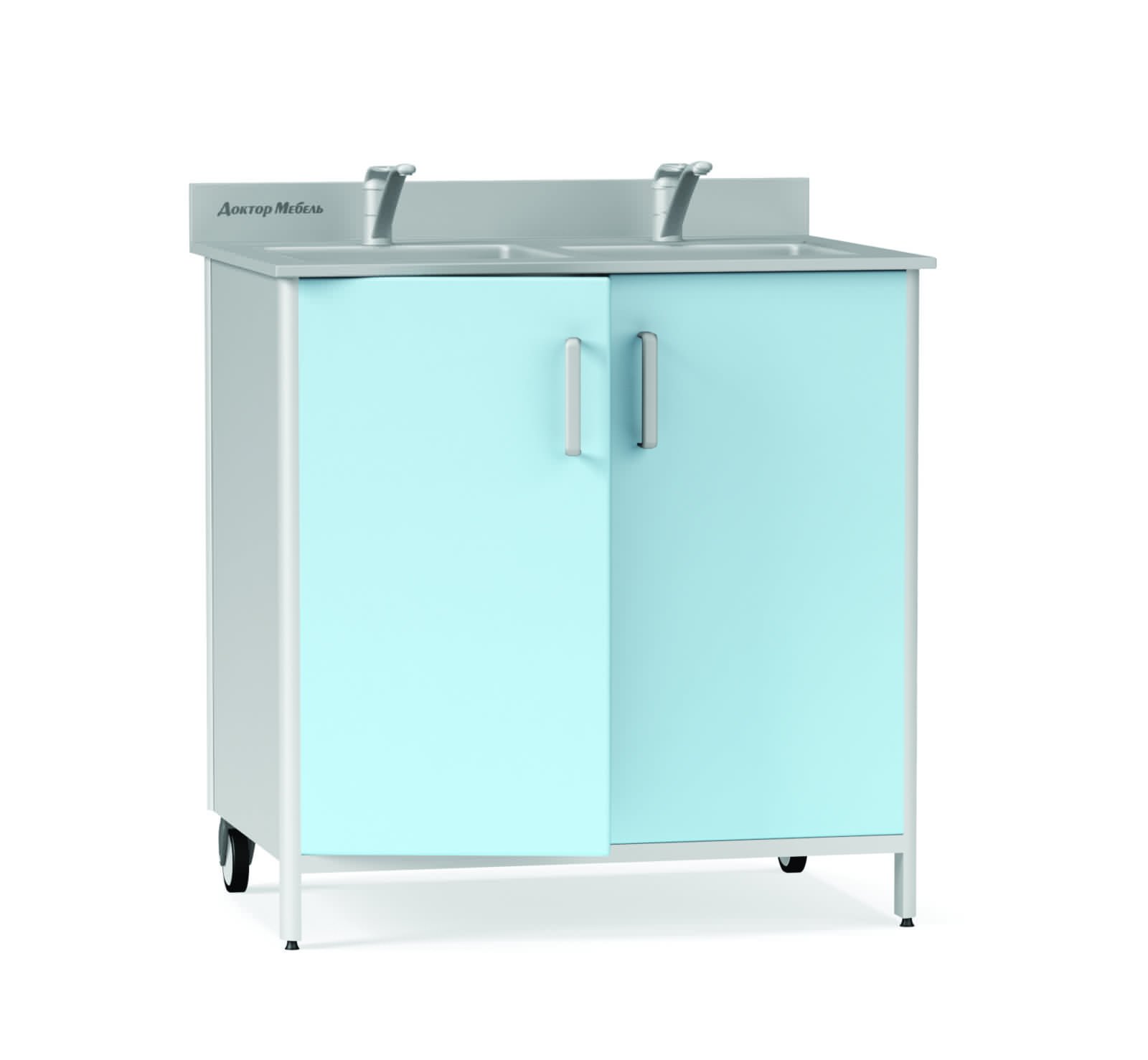 Тумба медицинская с двойной мойкой и полкой МТ-2нд
