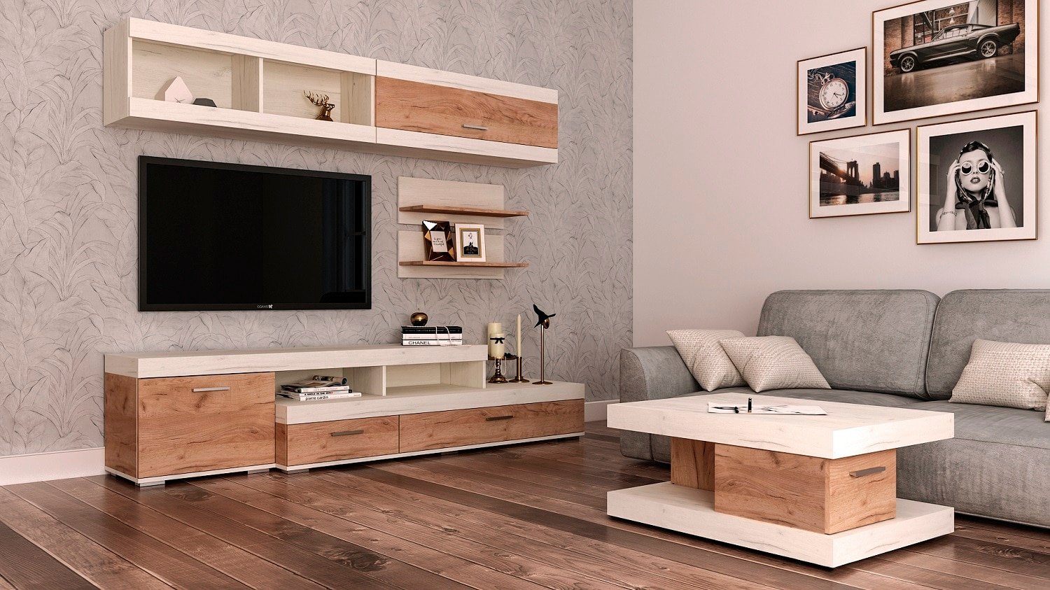 Тумба под ТВ 011 дуб крафт белыйбелый Текс