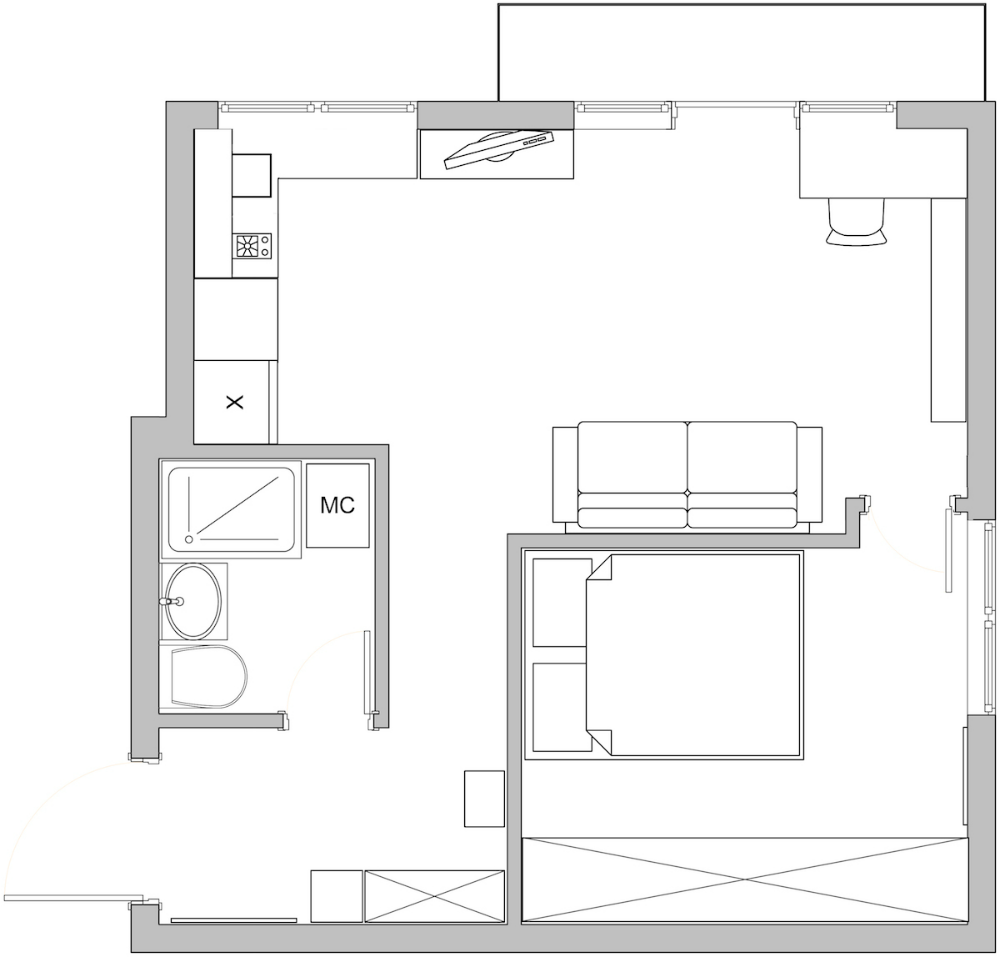 Перепланировка однокомнатной квартиры в студию 30 кв.м