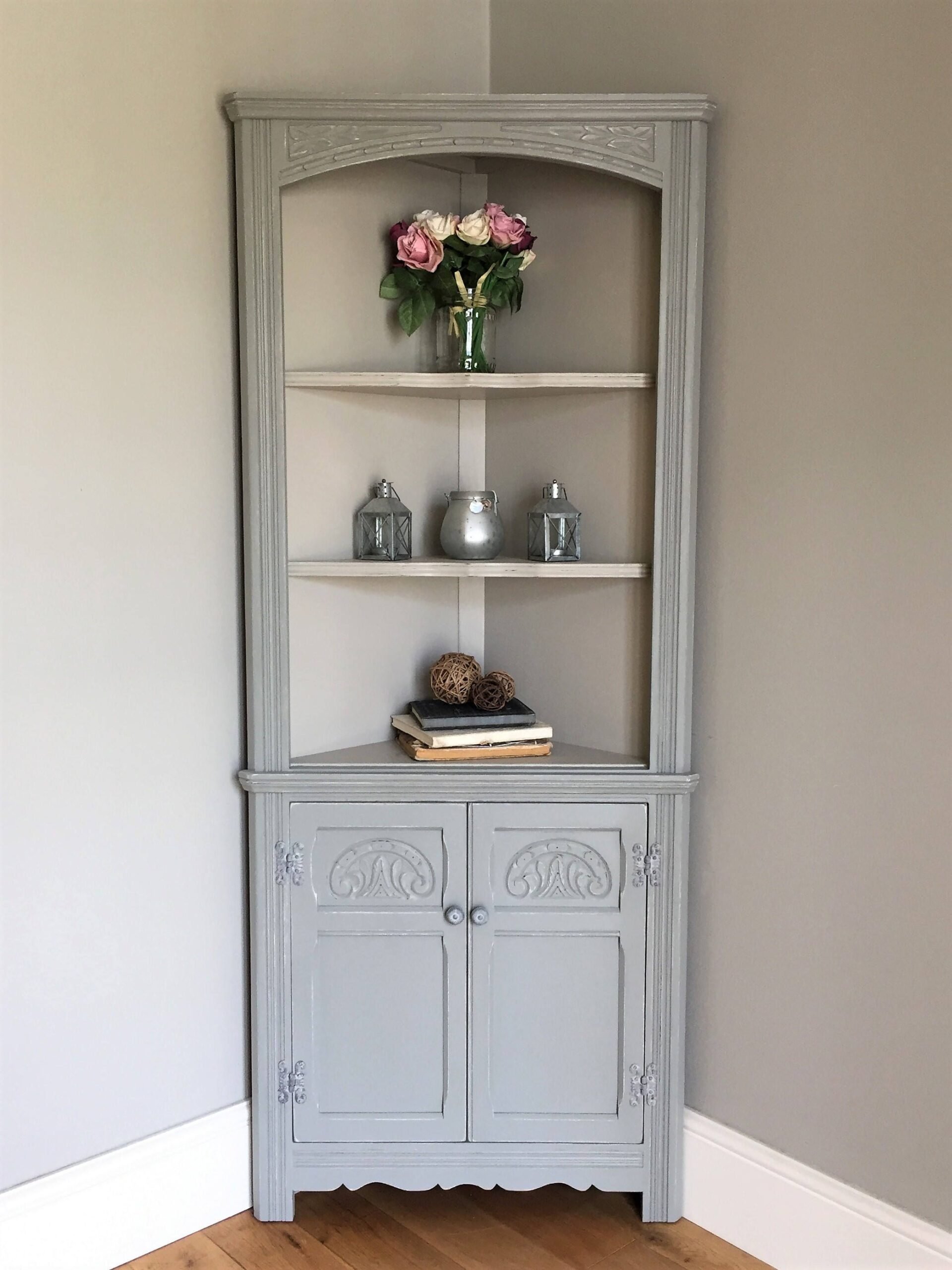 Угловой сервант для посуды в деревенском стиле