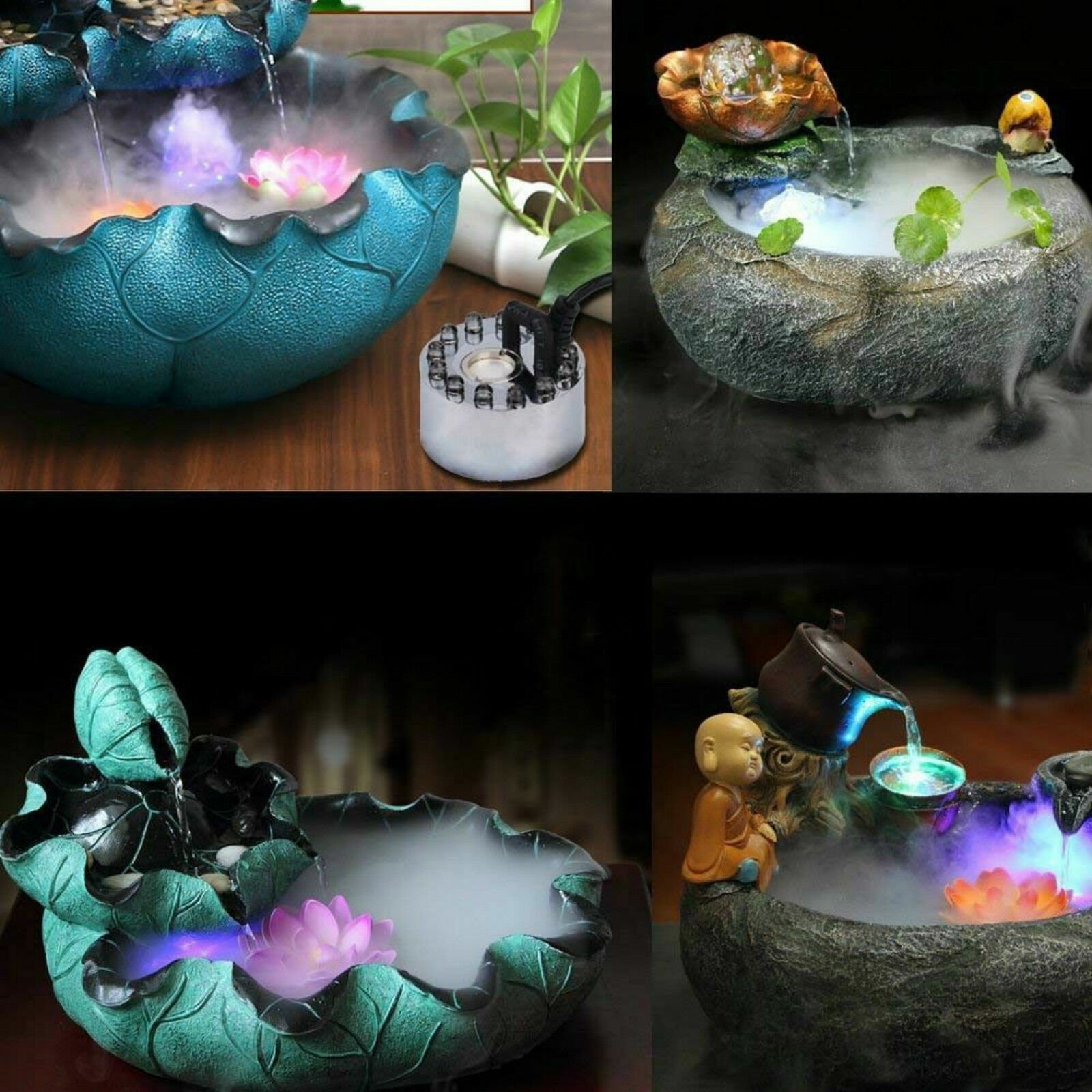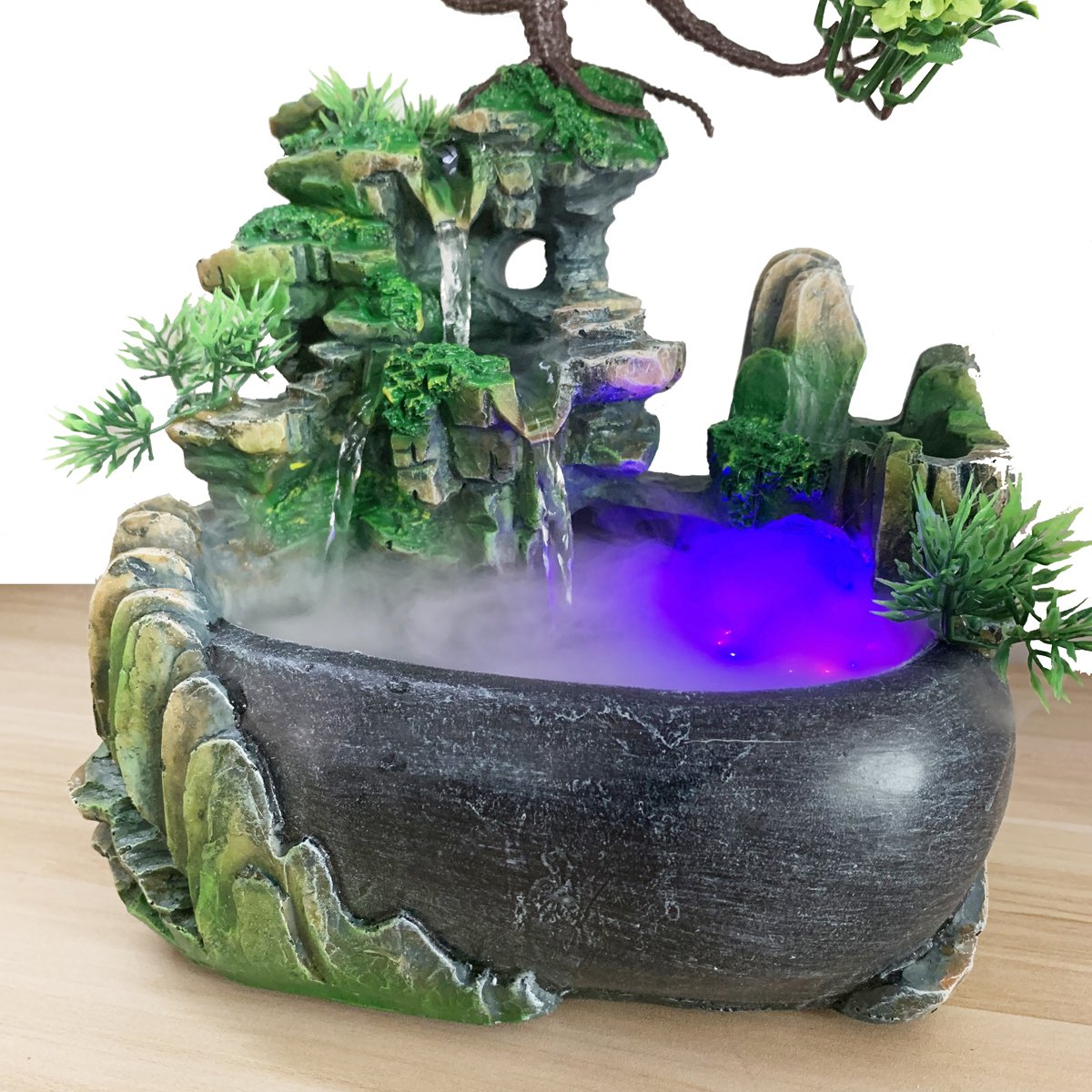 Настольный фонтан с подсветкой и туманом