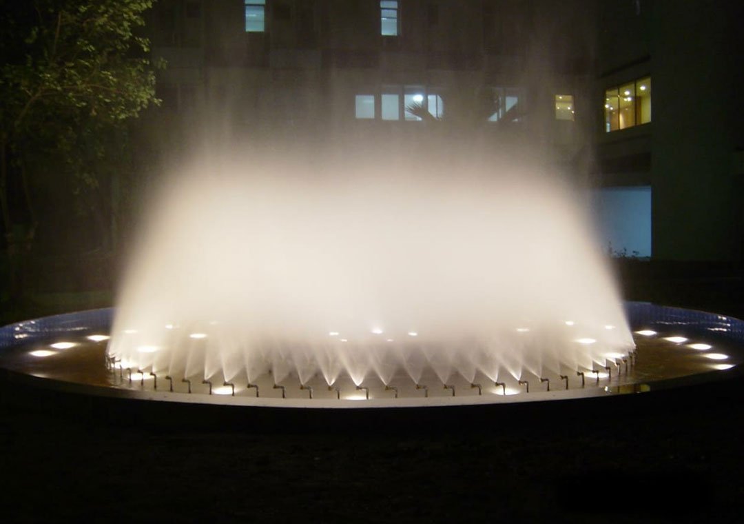 Фонтан с туманом и подсветкой