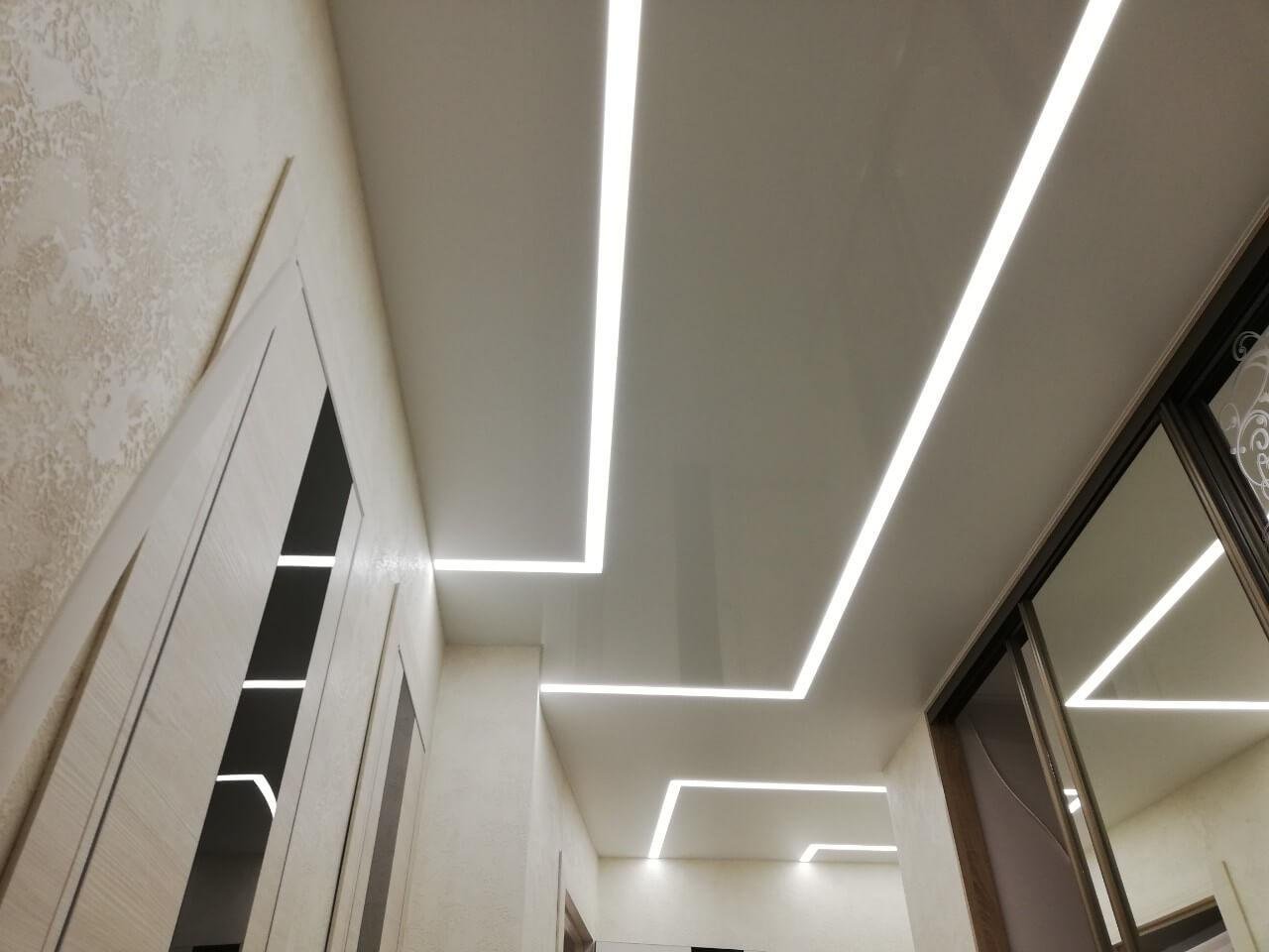 Световые линии на натяжном потолке в коридоре
