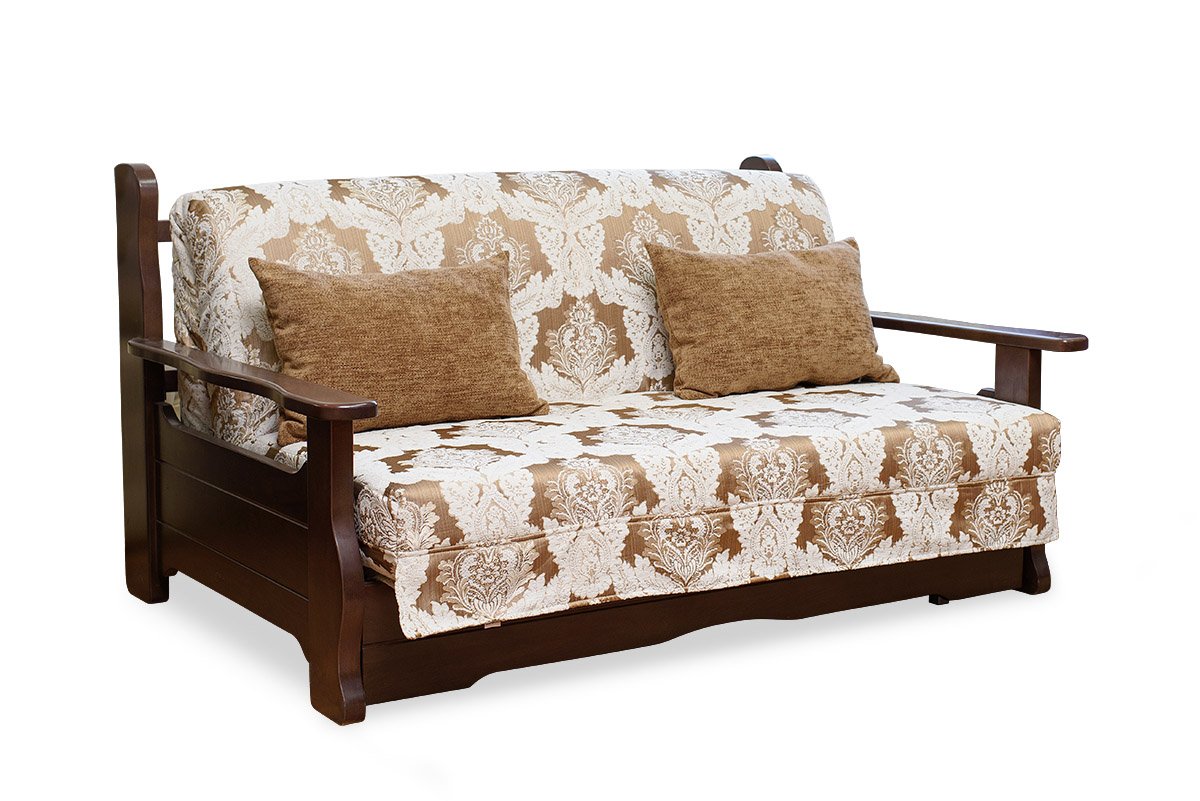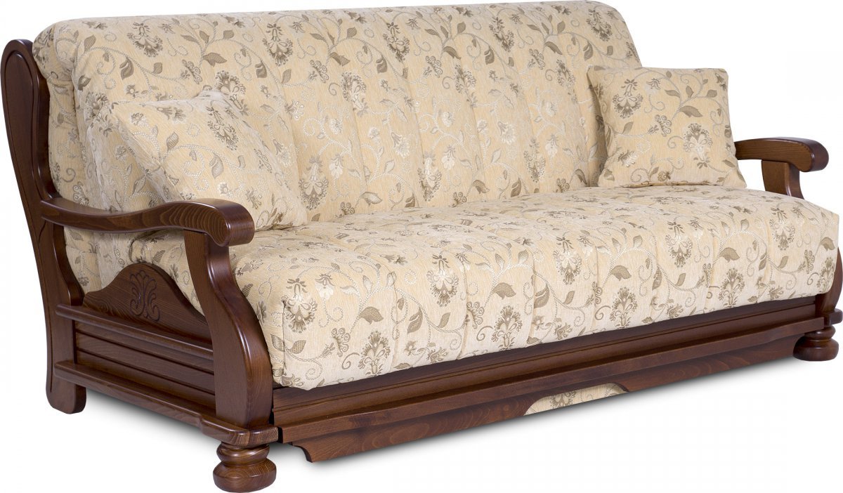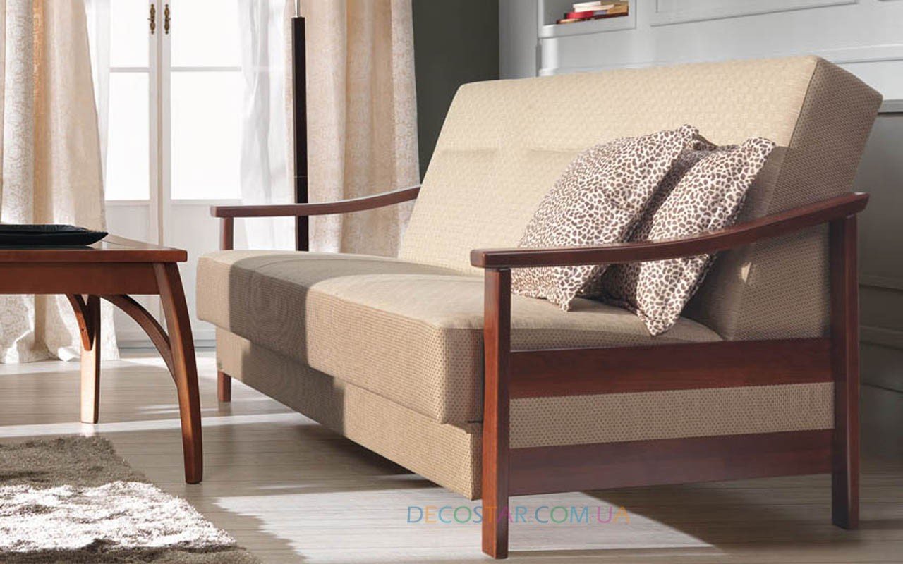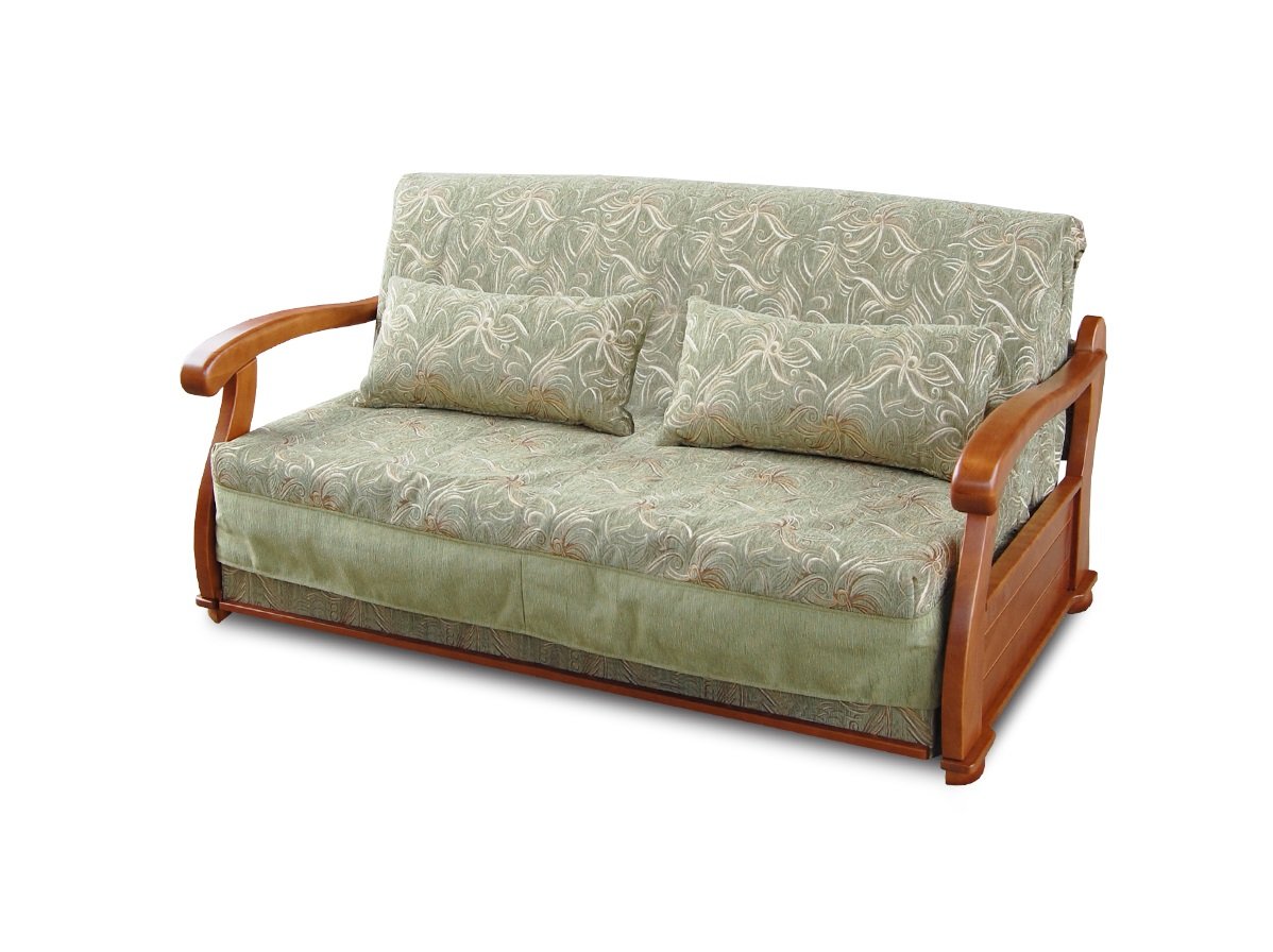 Диван раскладной с деревянными подлокотниками