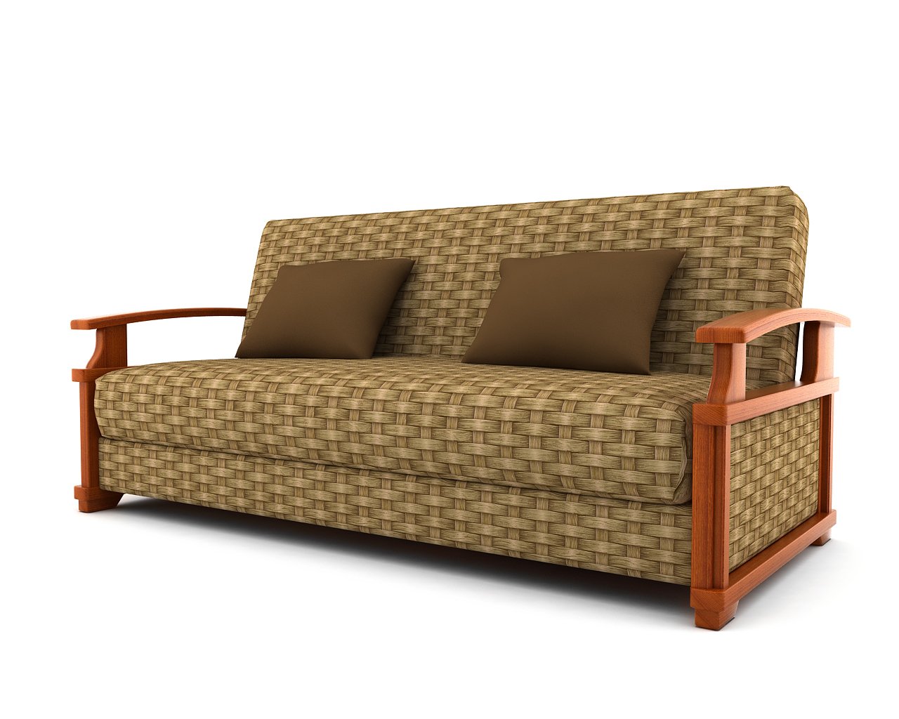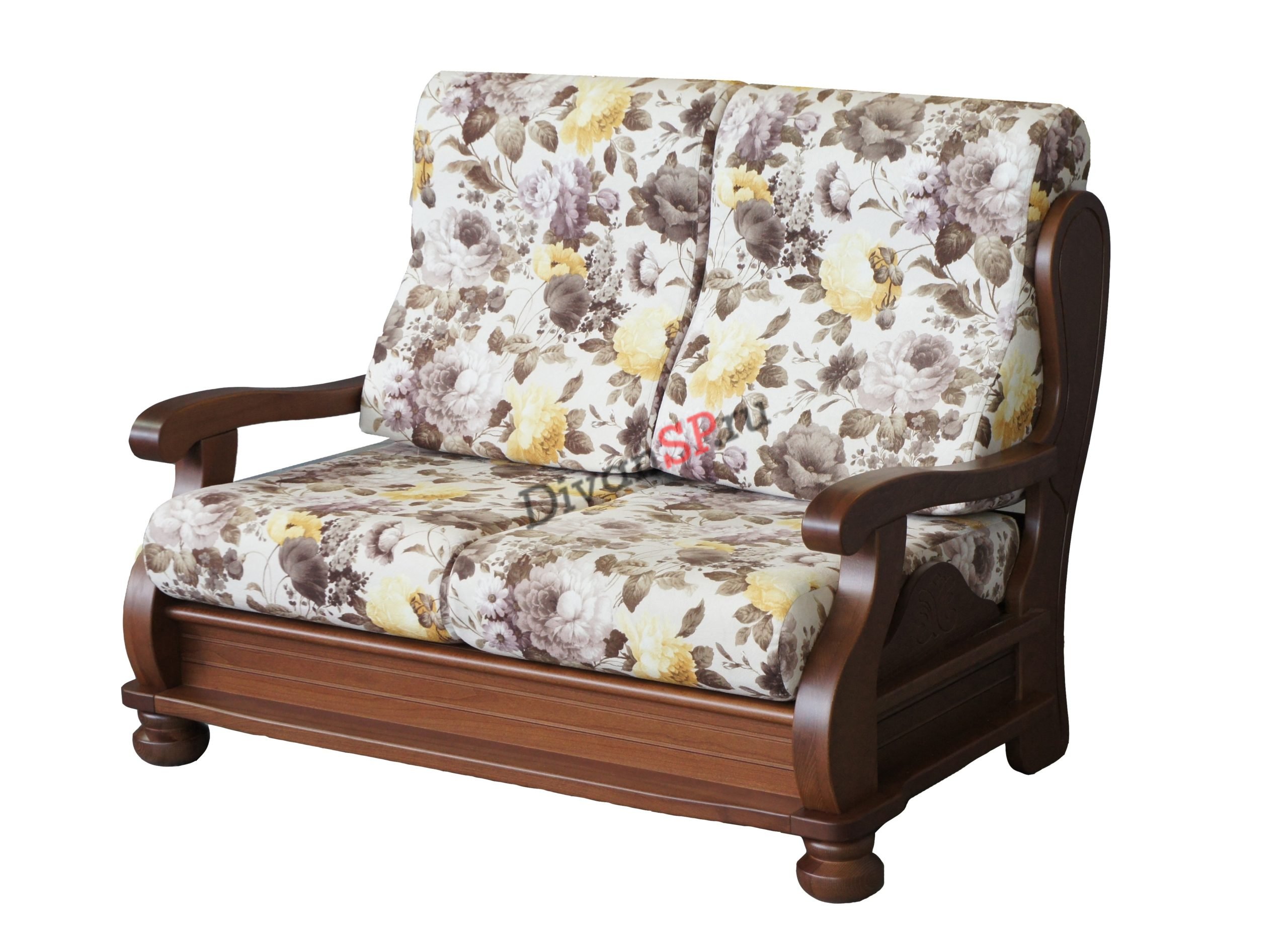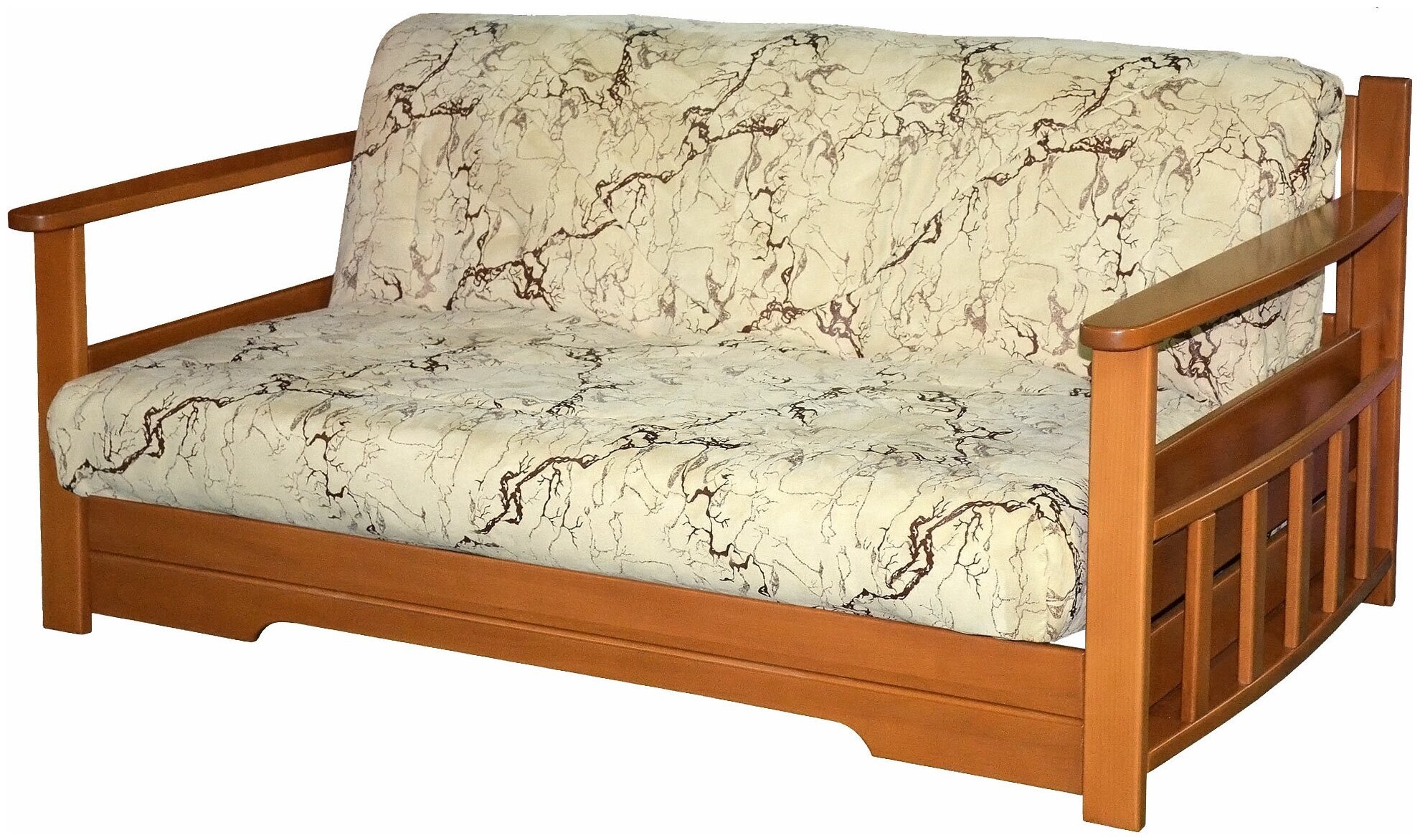 Диван раскладной с деревянными подлокотниками