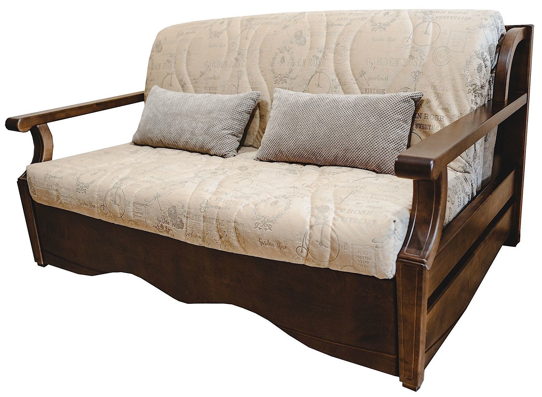 Диван выкатной с деревянными подлокотниками