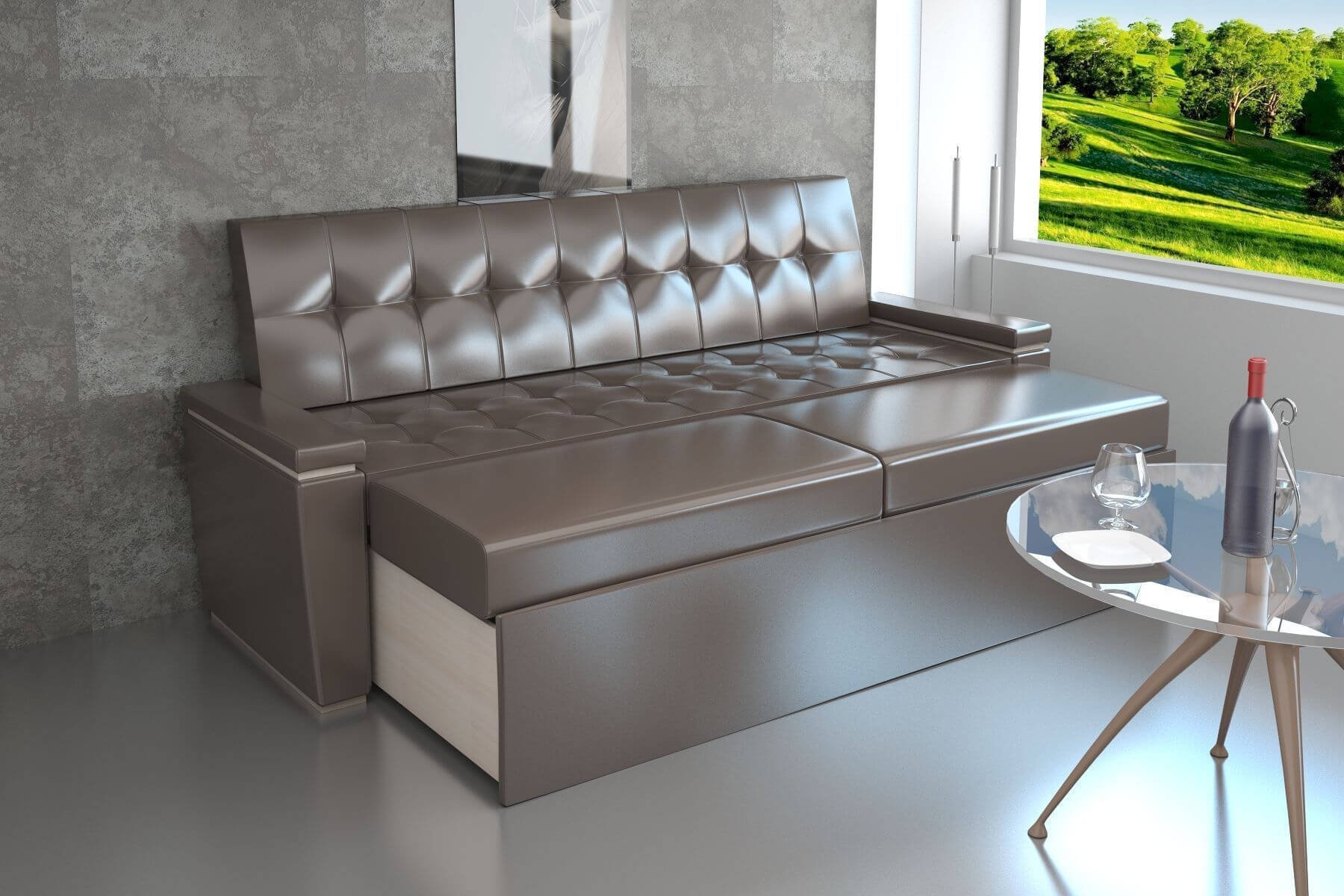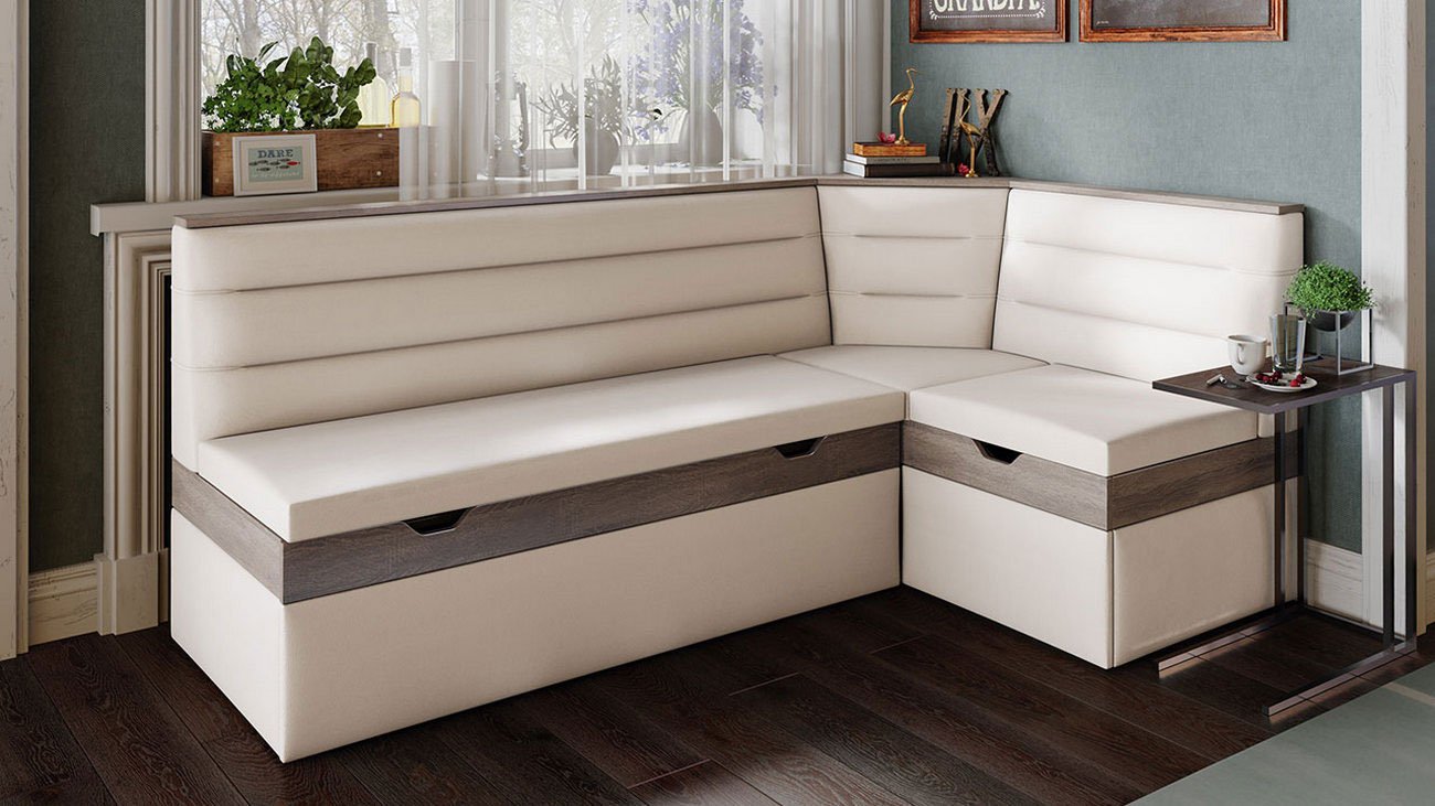 Кухонный диван секрет-4 со спальным местом прямой (капро эко крем)