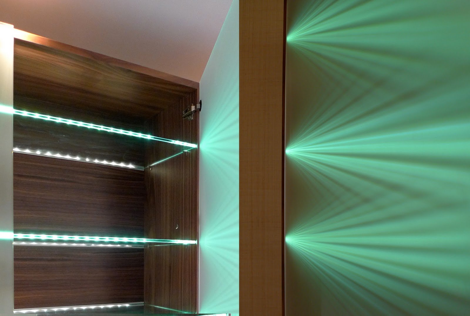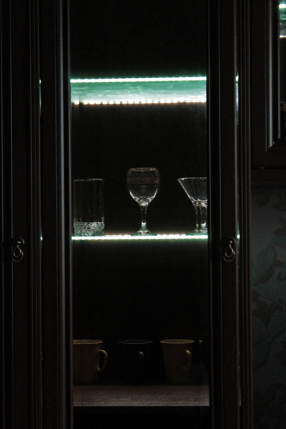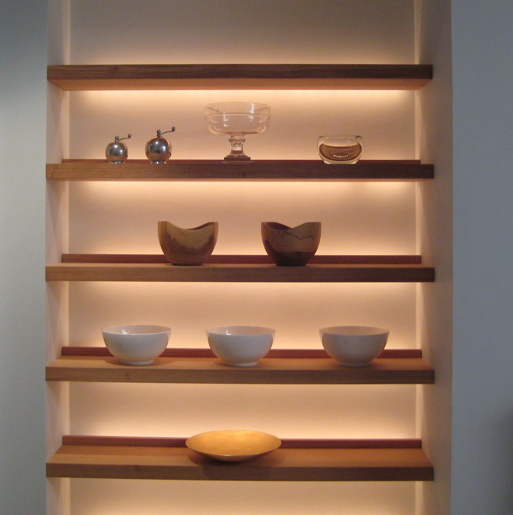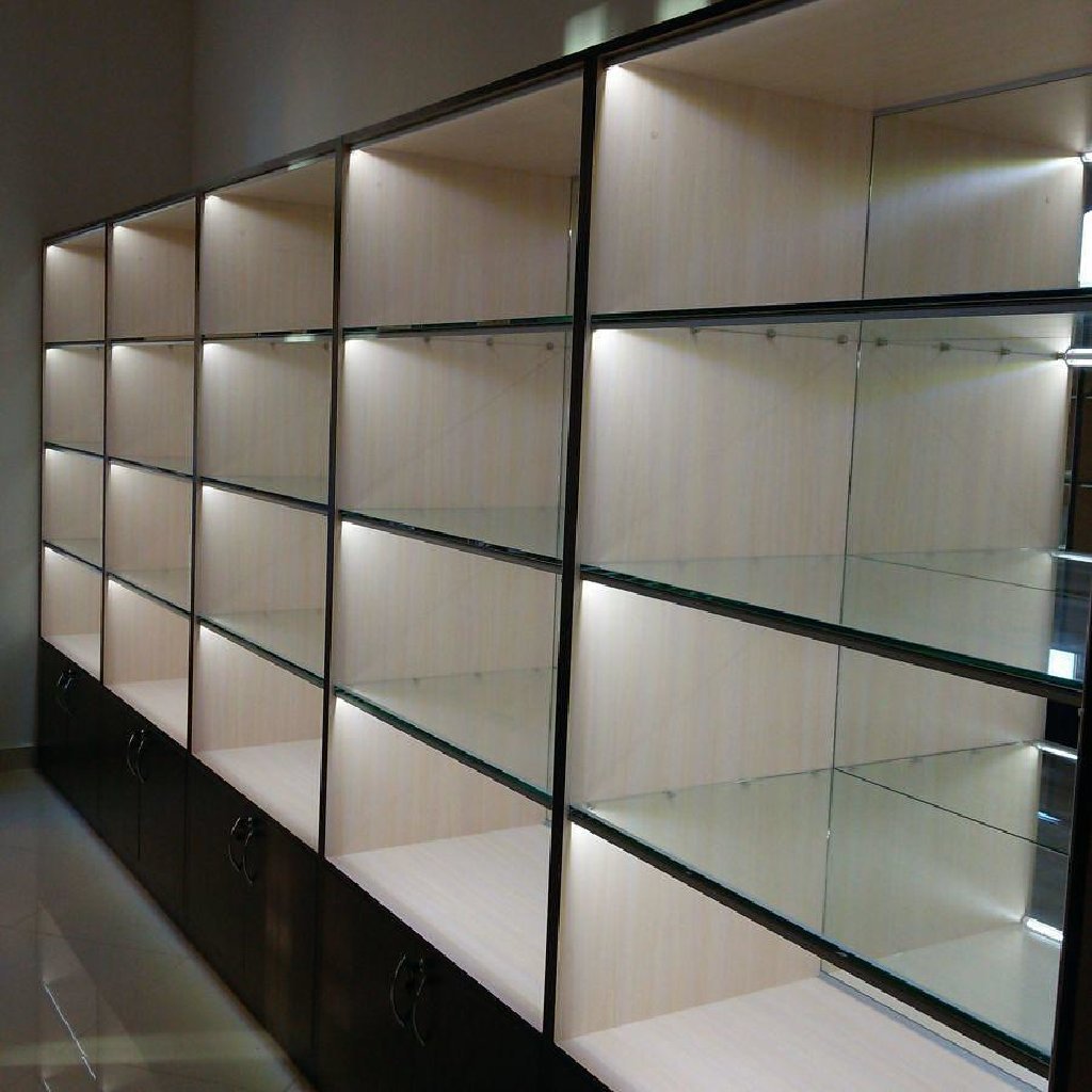 Подсветка стеклянных полок в шкафу