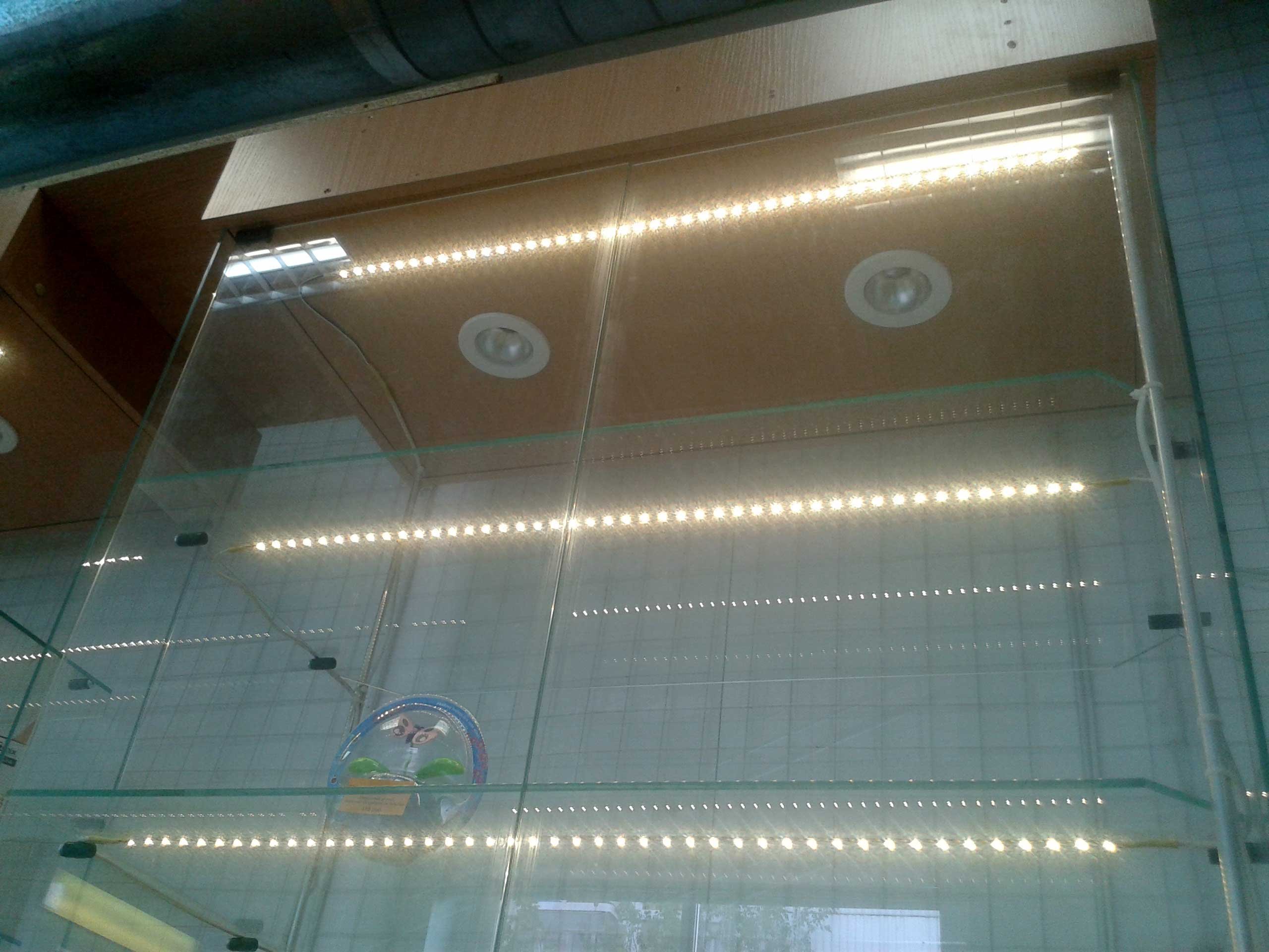 Витрина светодиодная лента, подсветка снизу полки