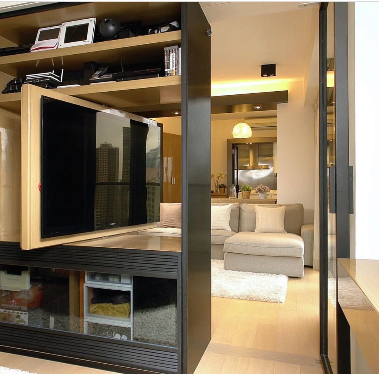 Перегородка с вращающимся телевизором для зонирования