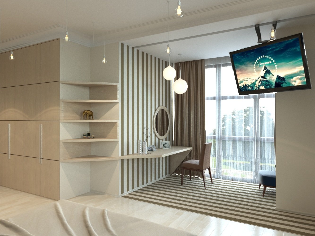 Перегородка с телевизором для зонирования