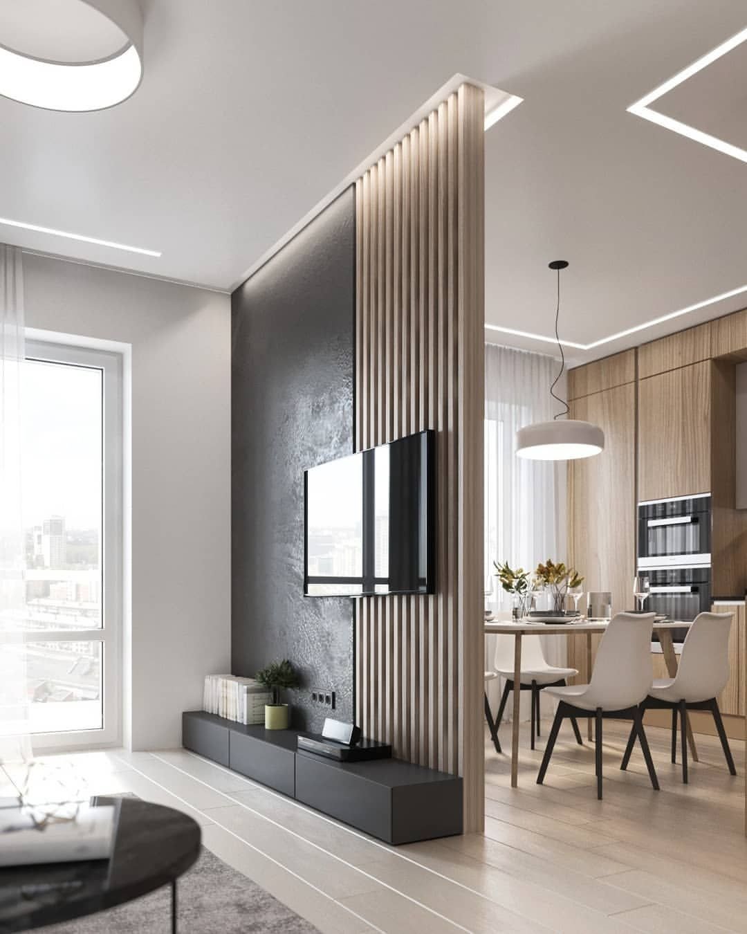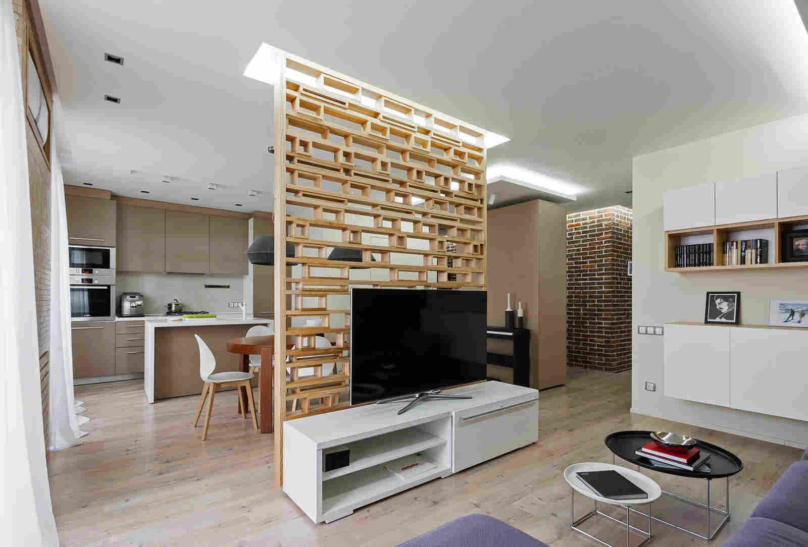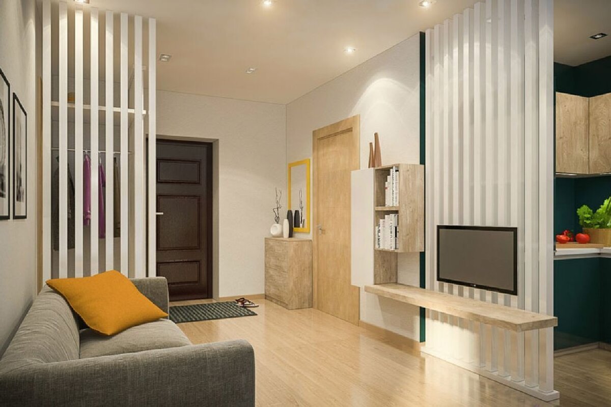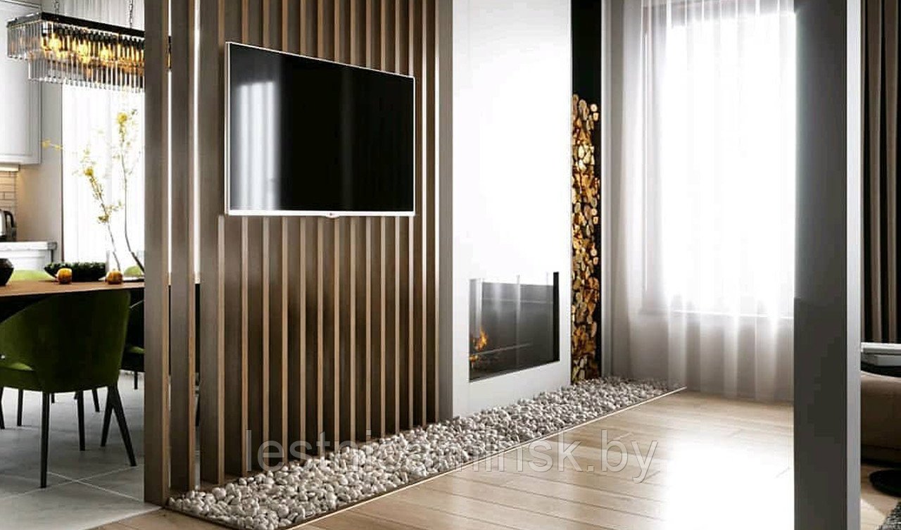 Реечные перегородки для зонирования с телевизором