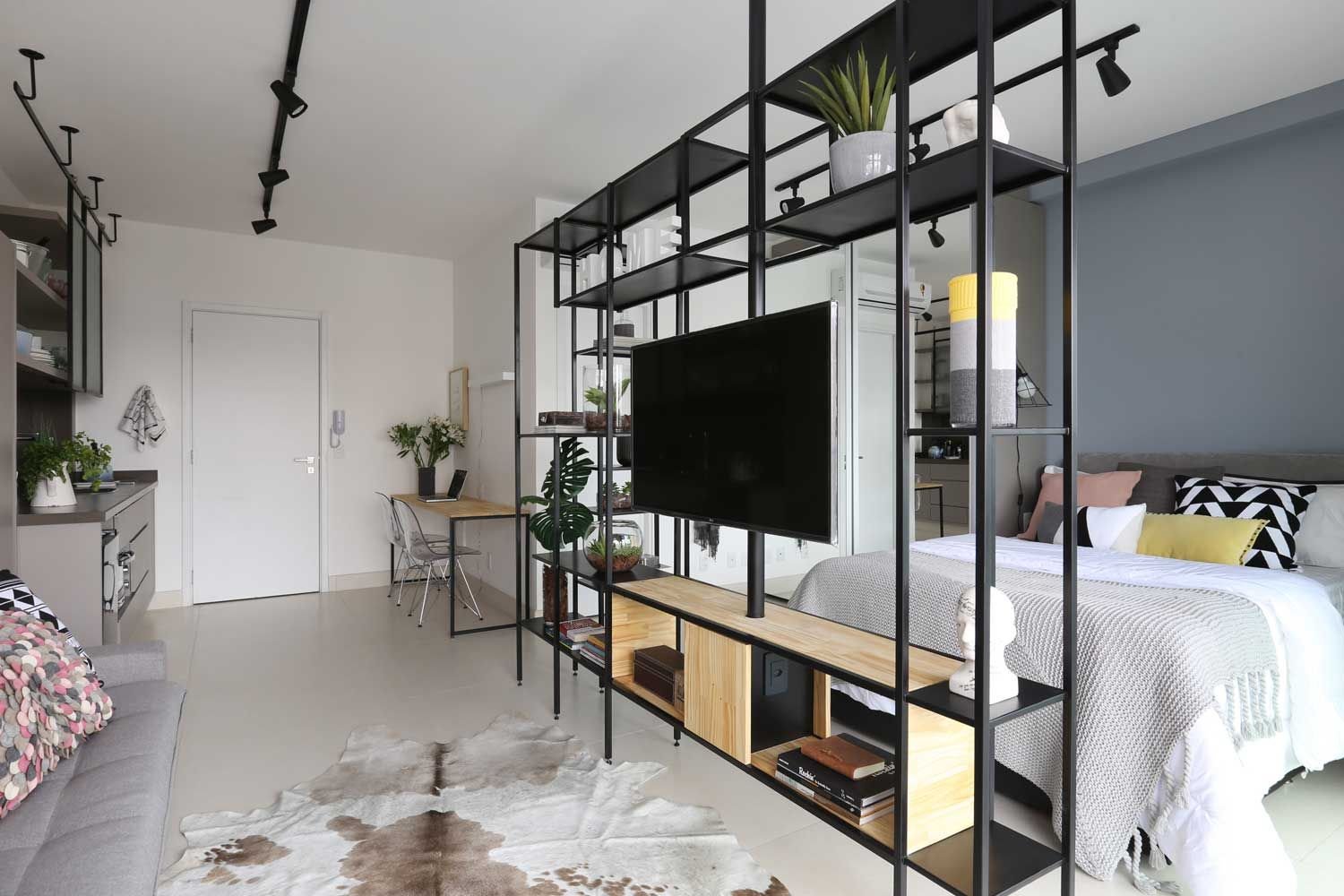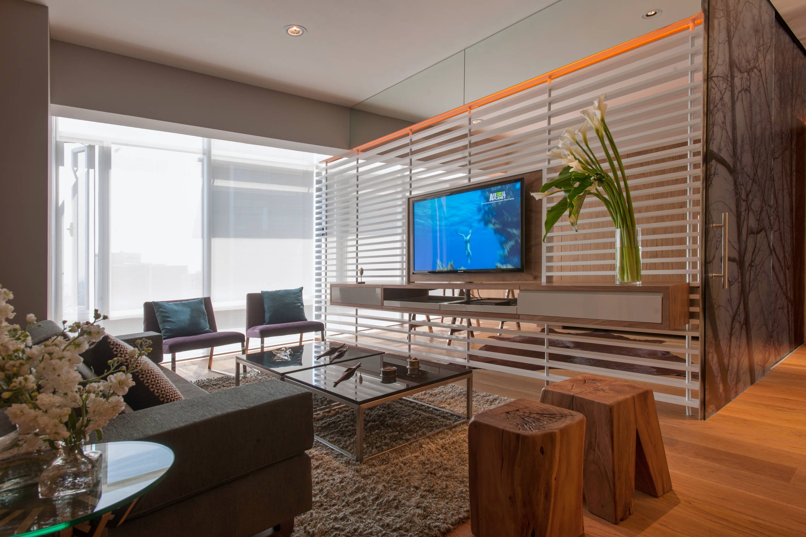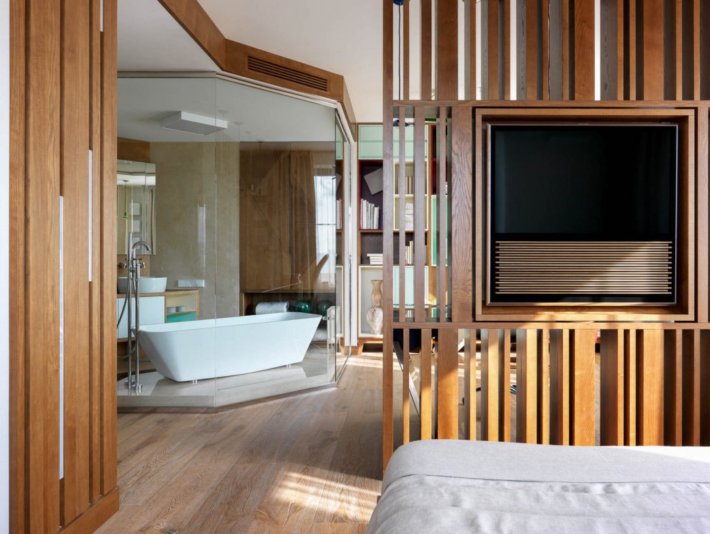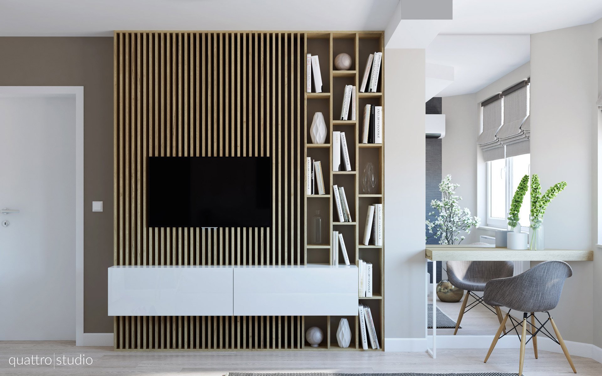 Реечные перегородки для зонирования с телевизором