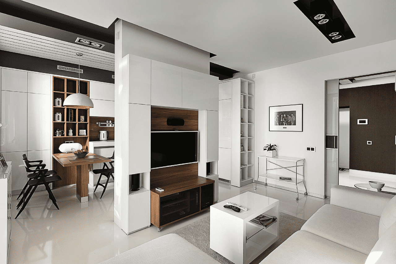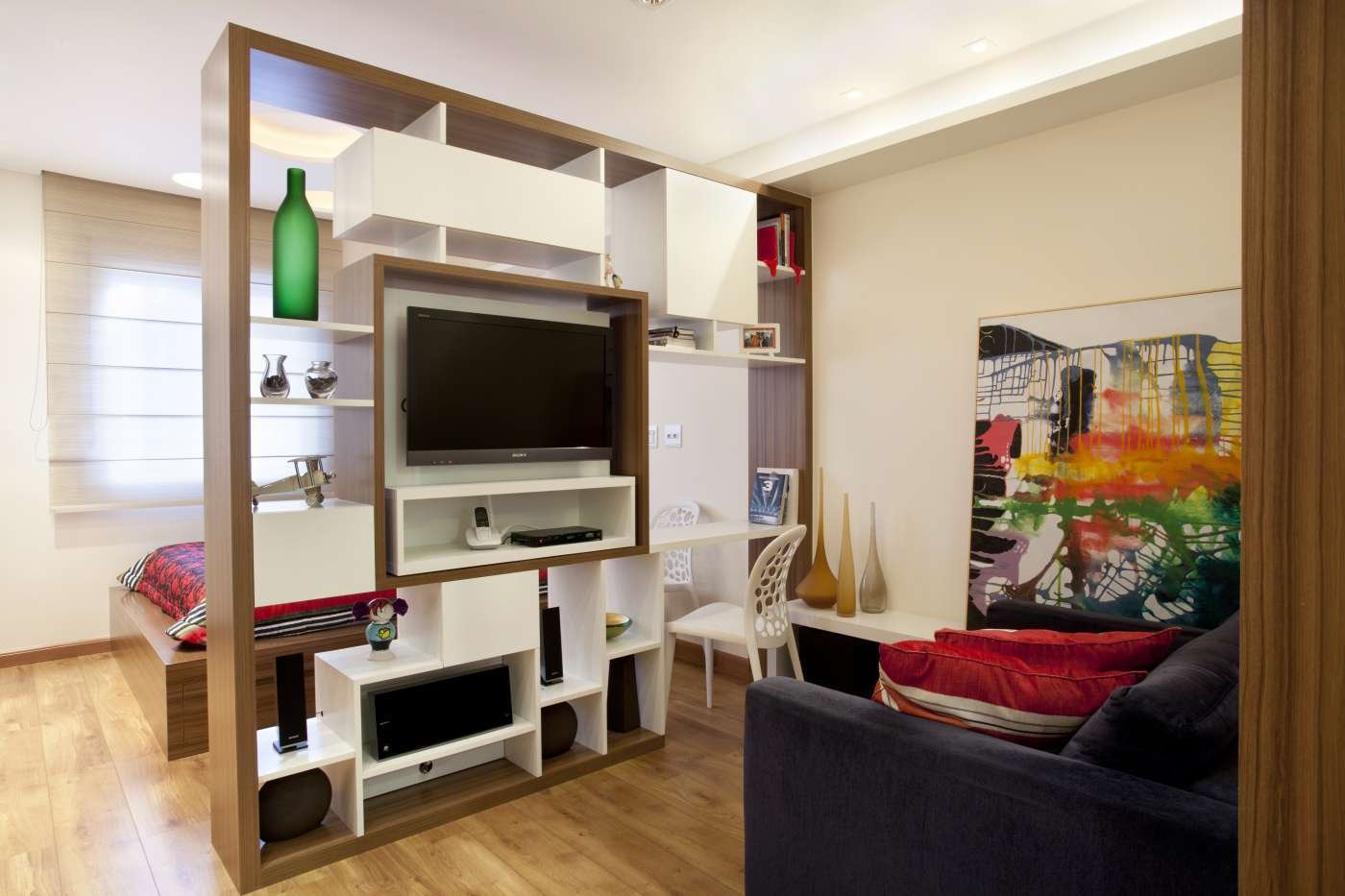Разделительная стенка с телевизором для комнаты