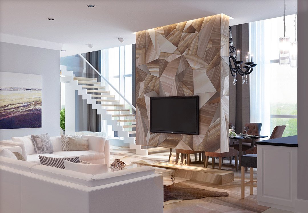 Телевизор в центре гостиной