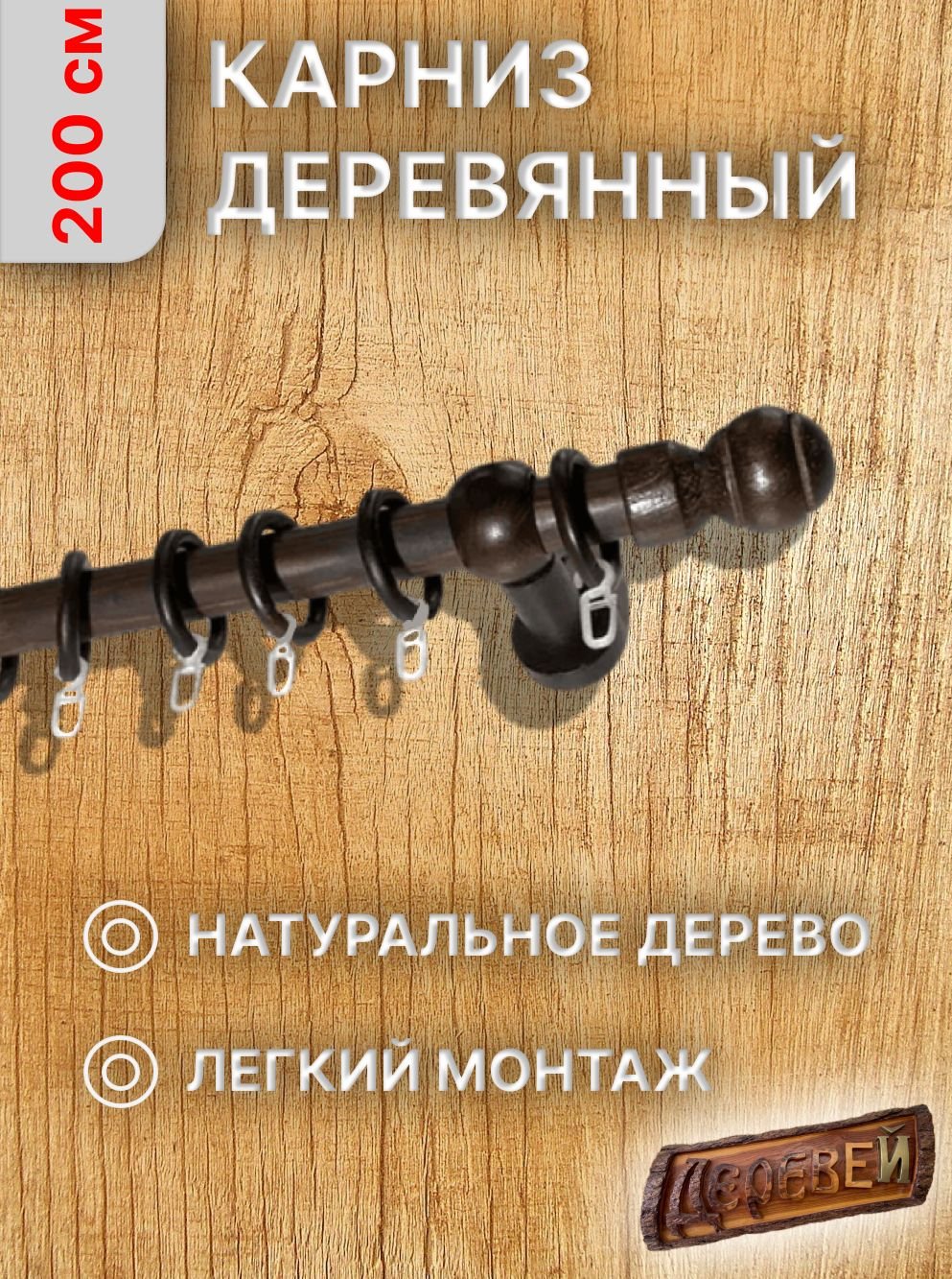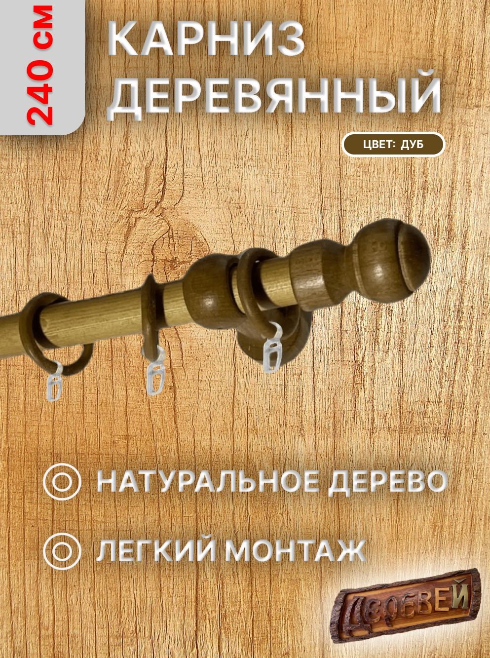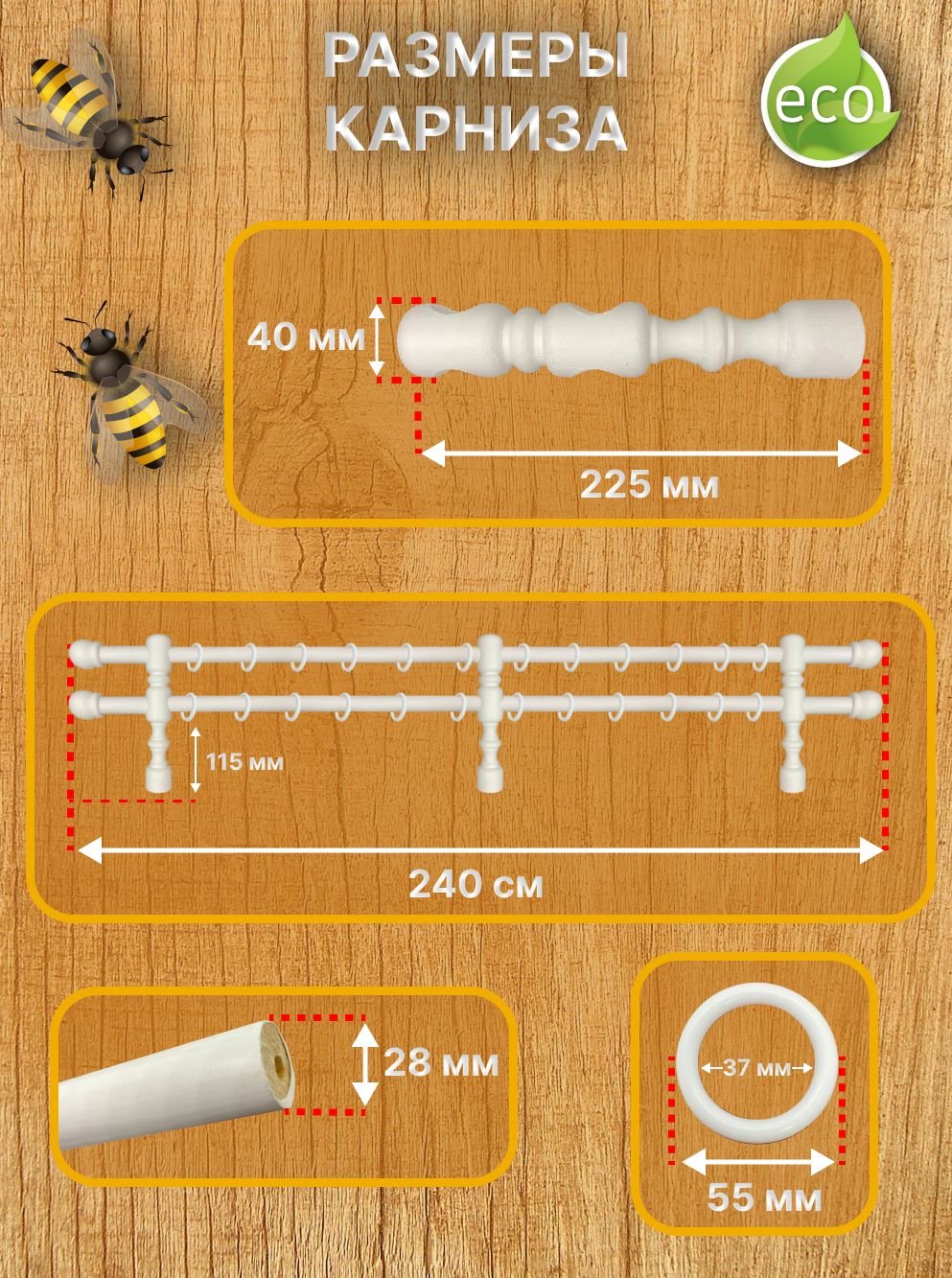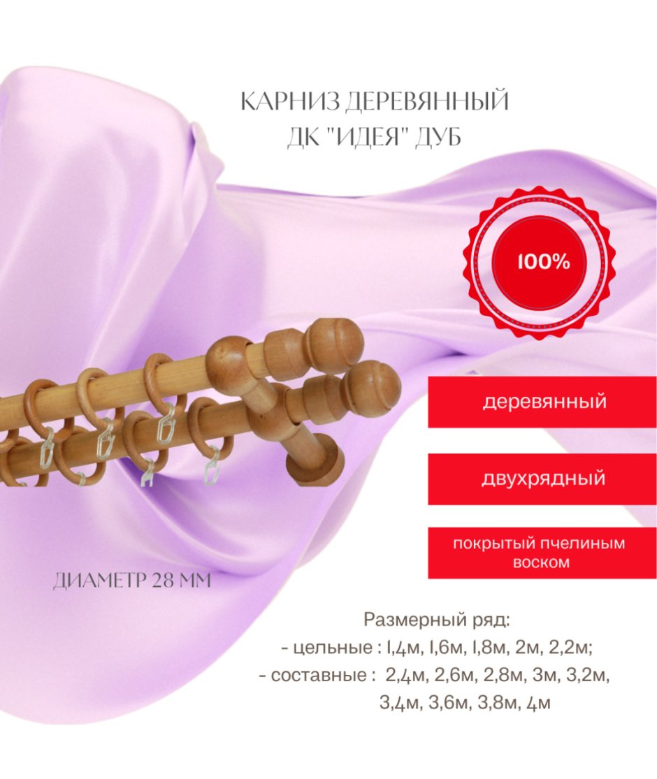 Двойной деревянный карниз Monako 28мм + 28мм, 300см, дуб