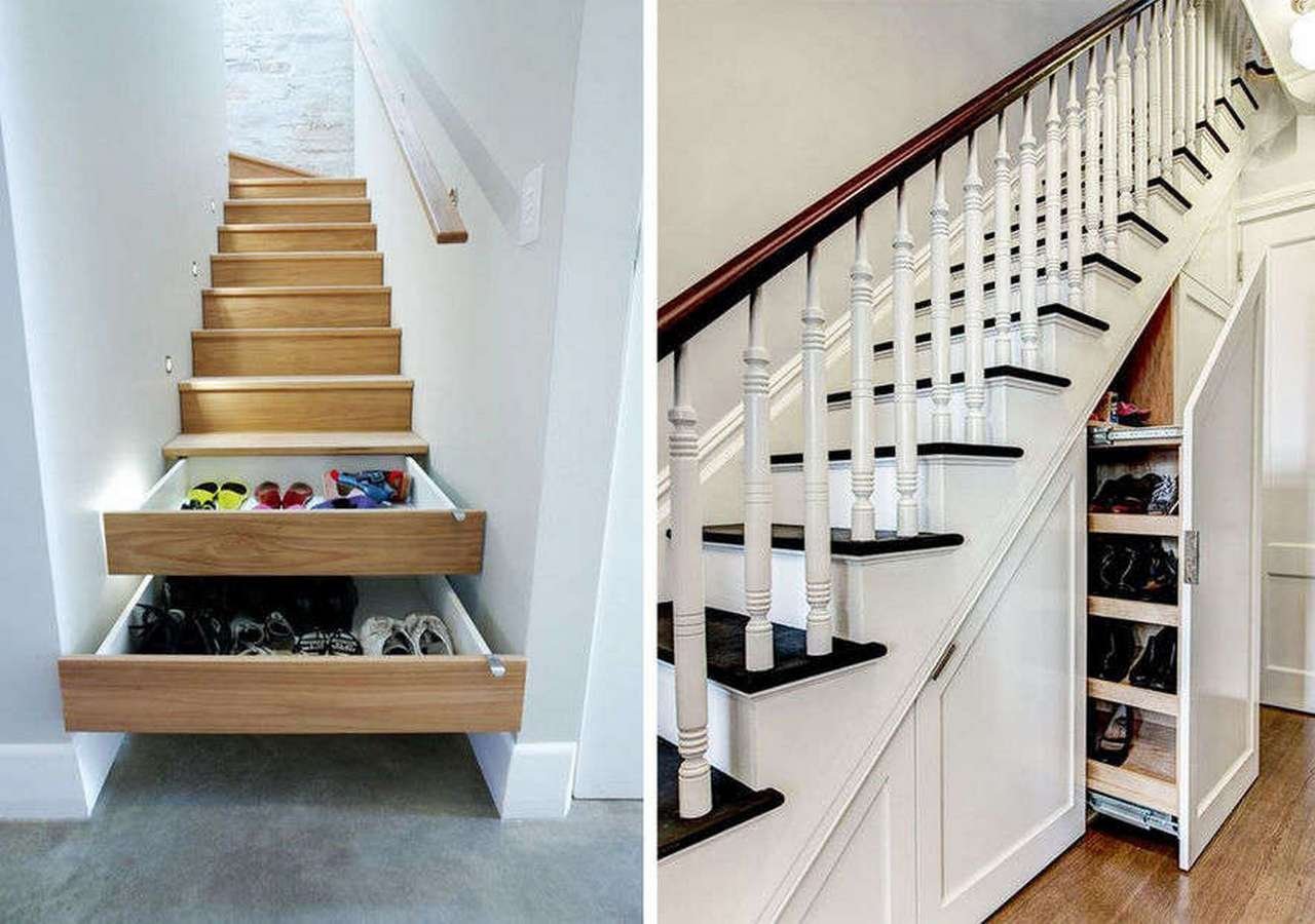 Ящики для обуви под лестницей