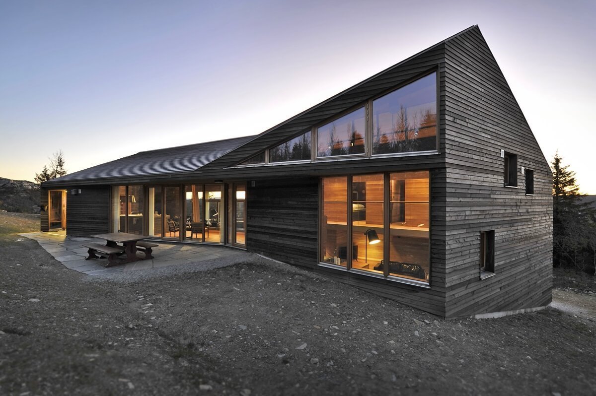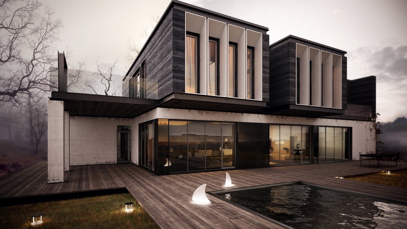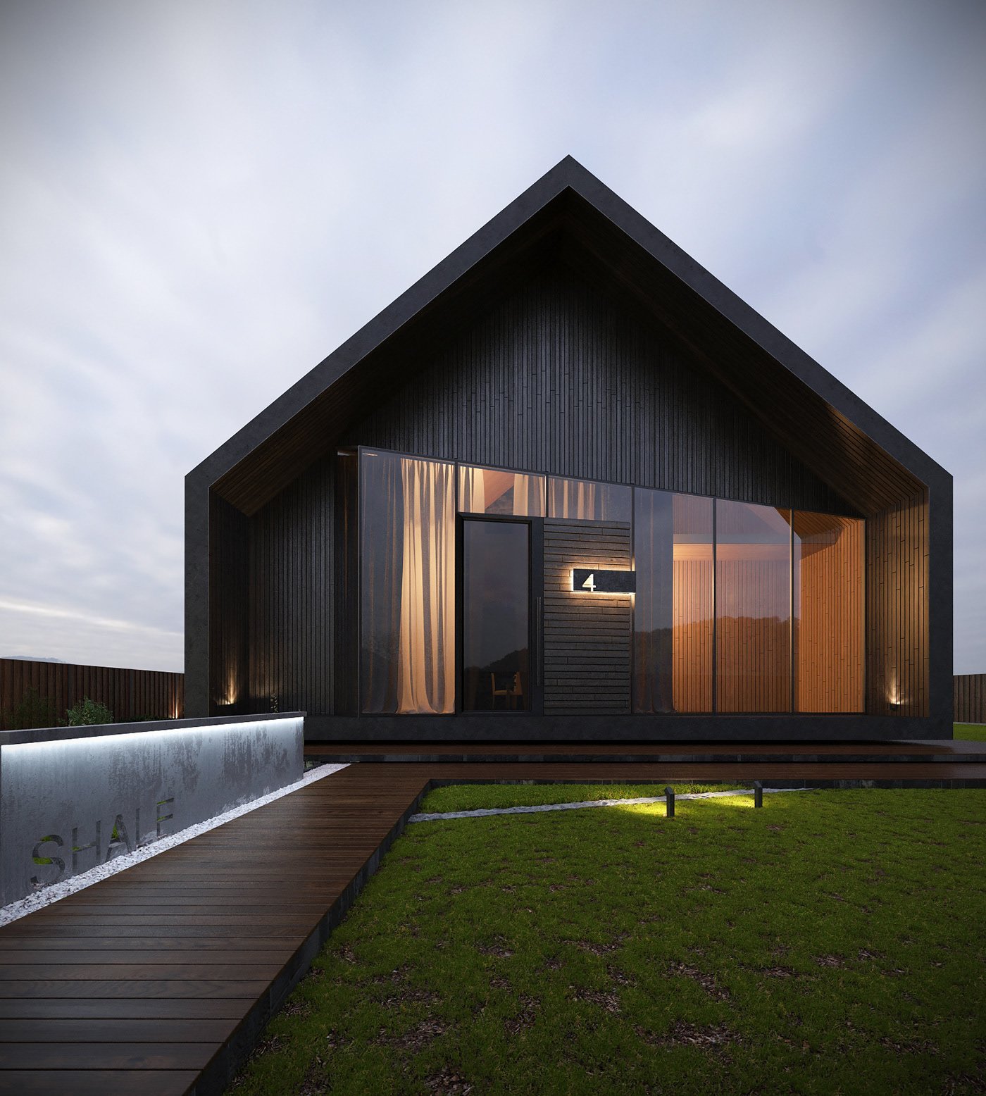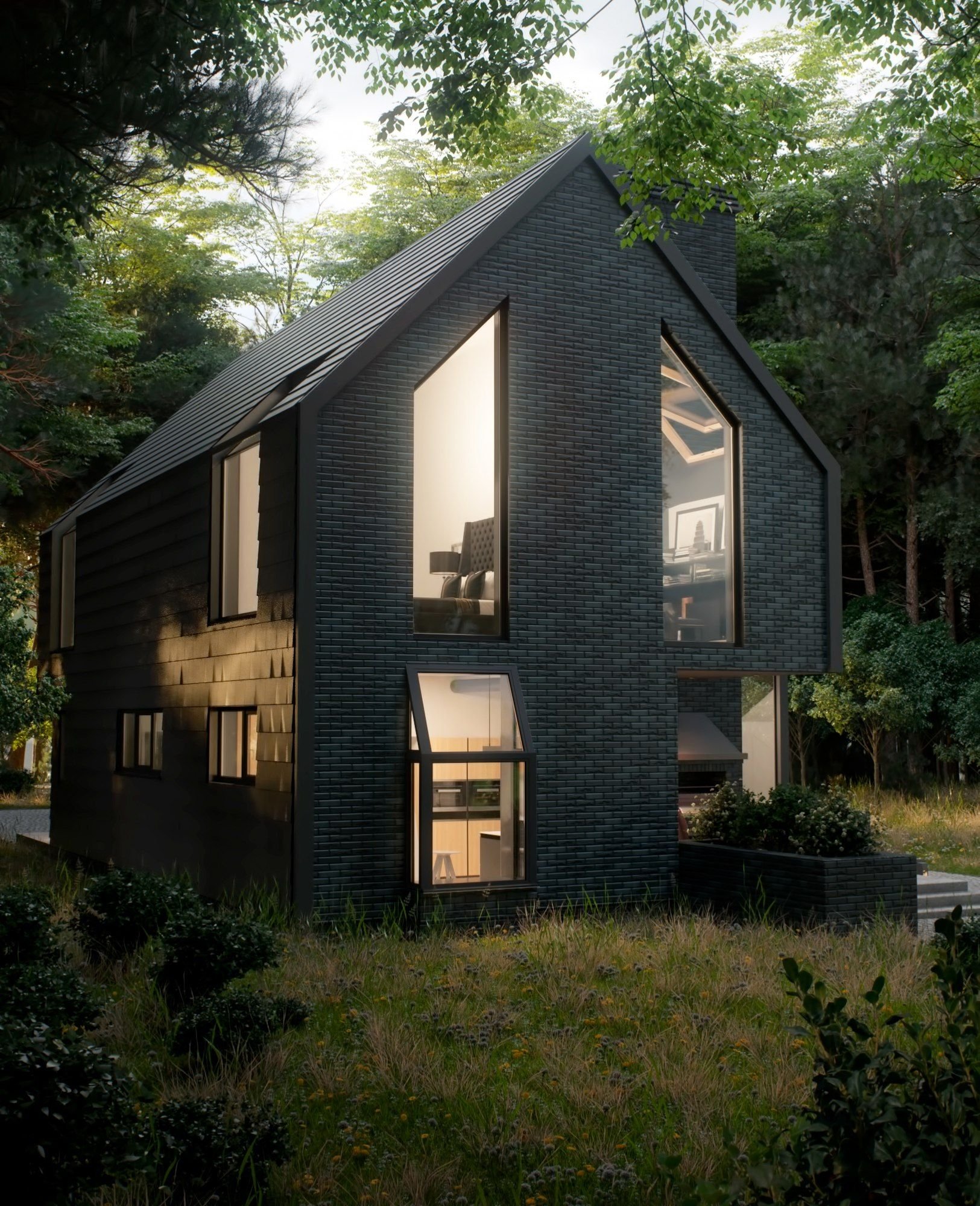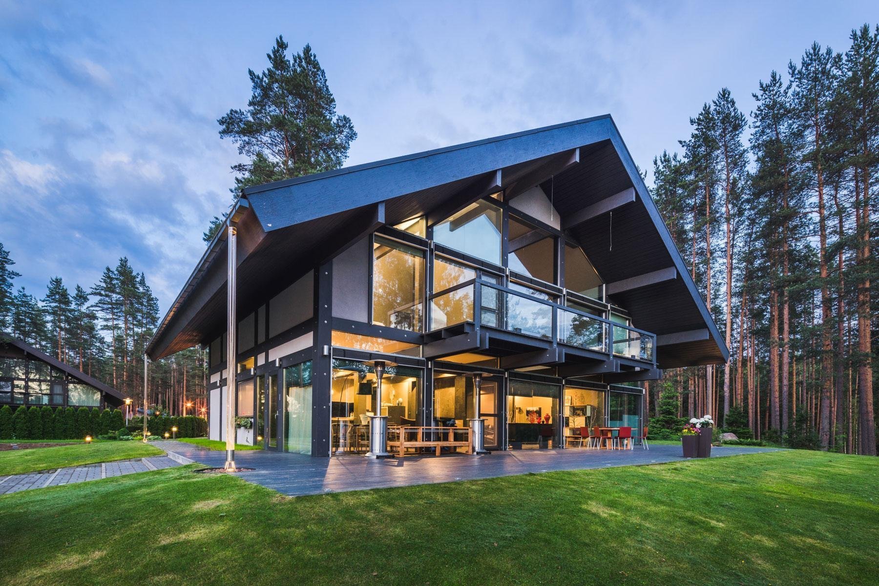 Двухэтажный дом с мансардной крышей и панорамными окнами