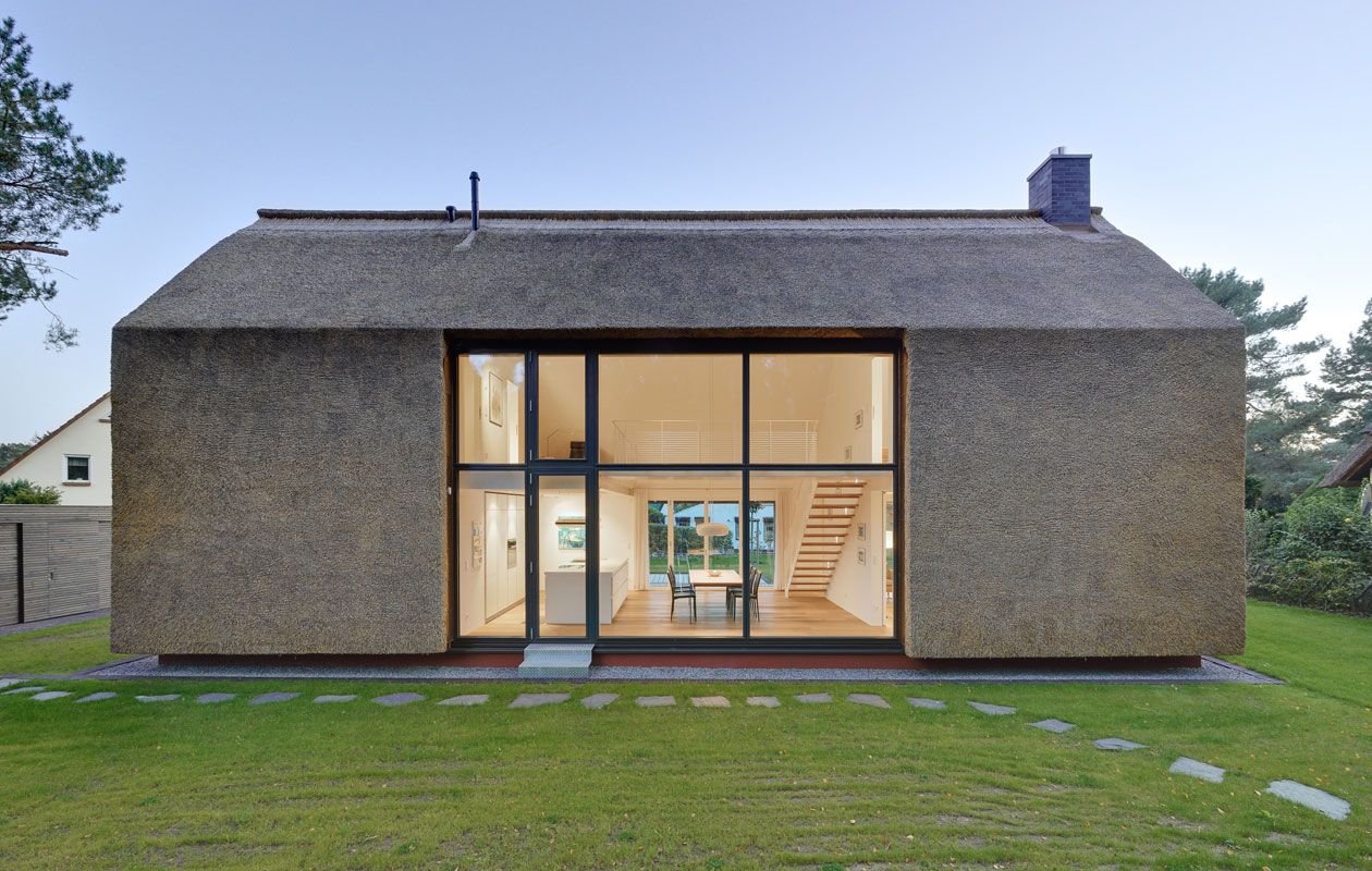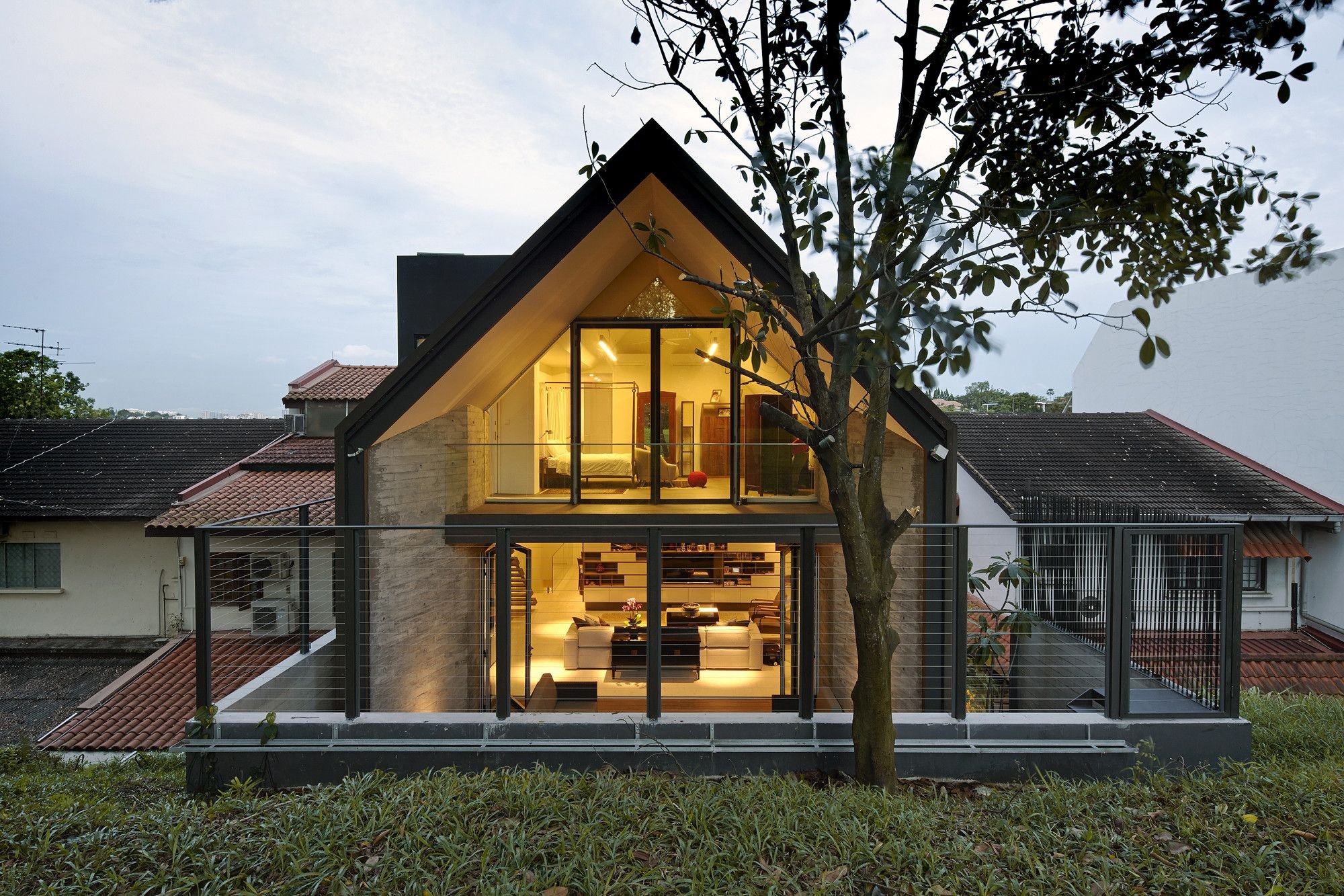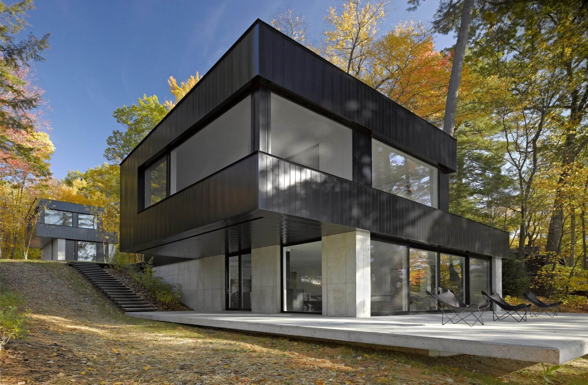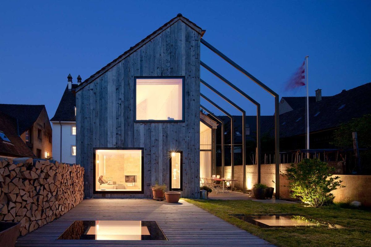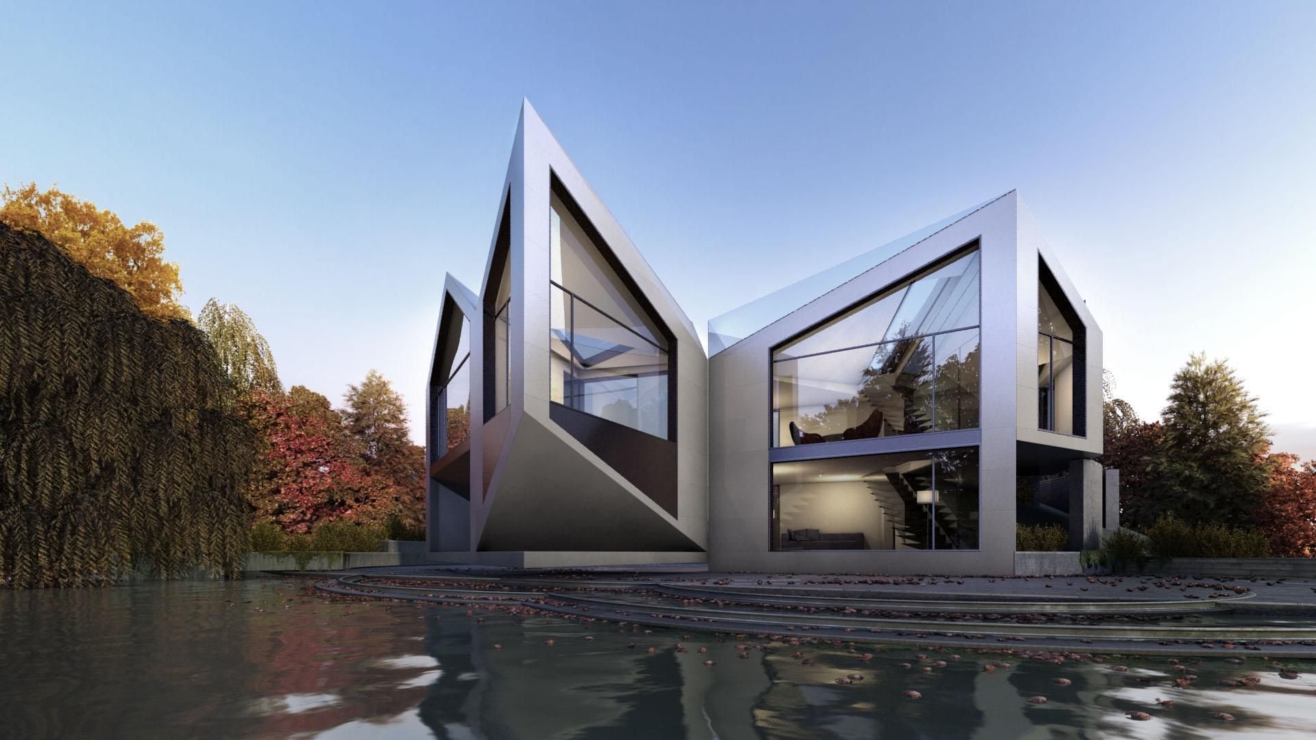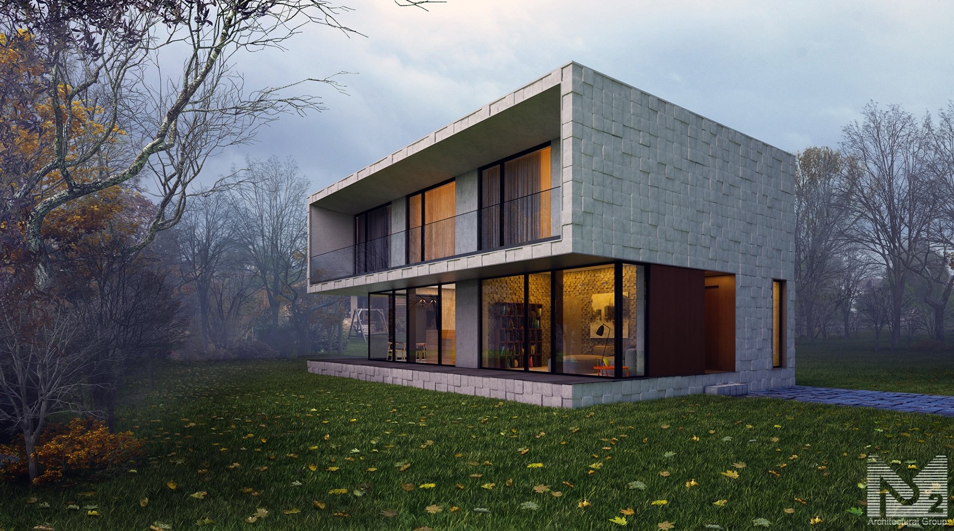 Двухэтажный дом с мансардной крышей и панорамными окнами