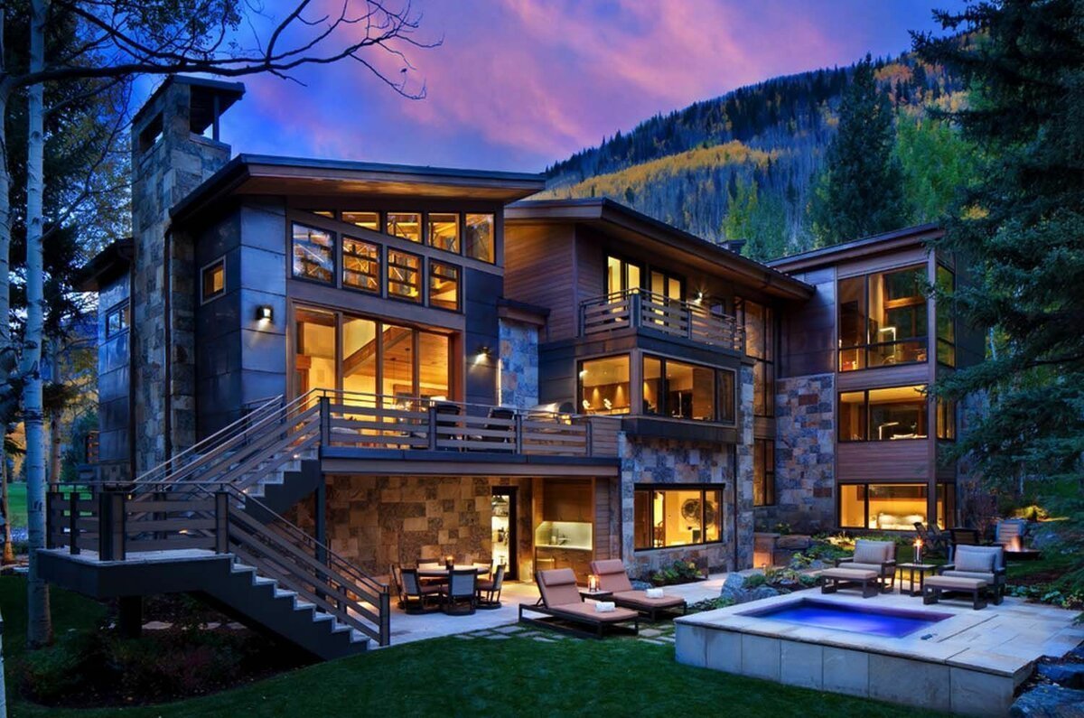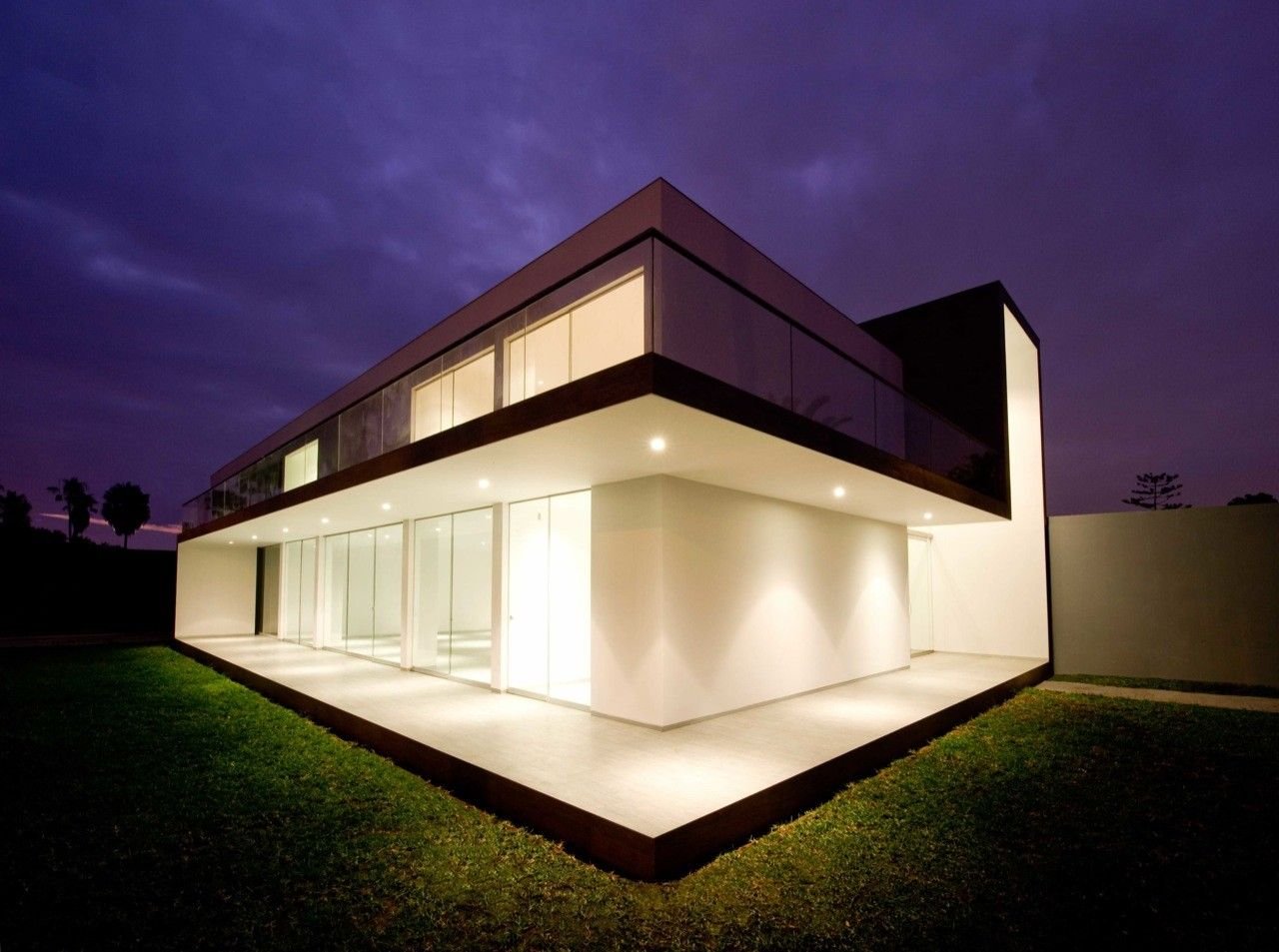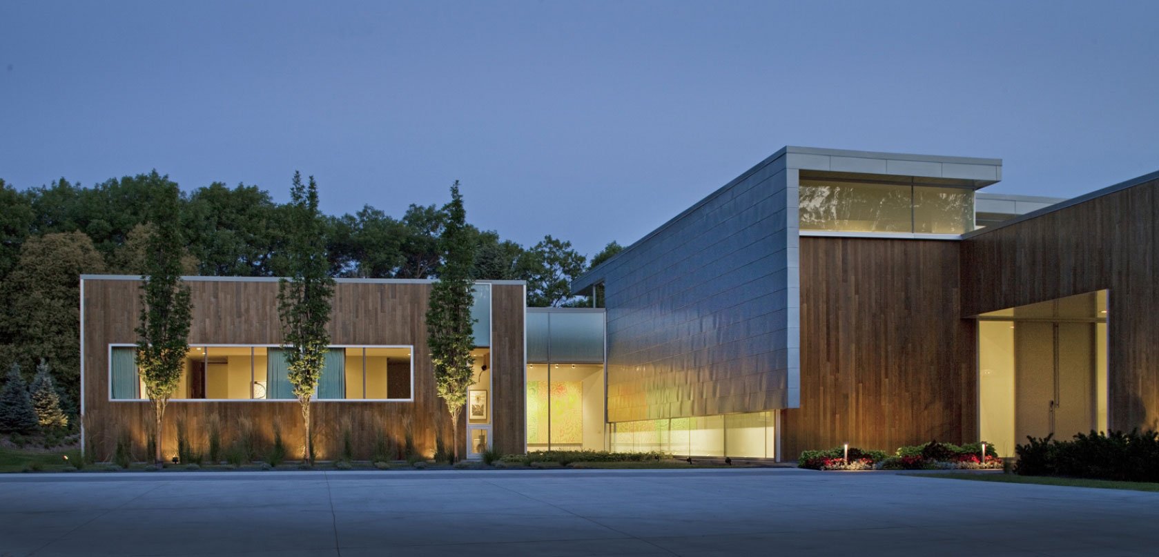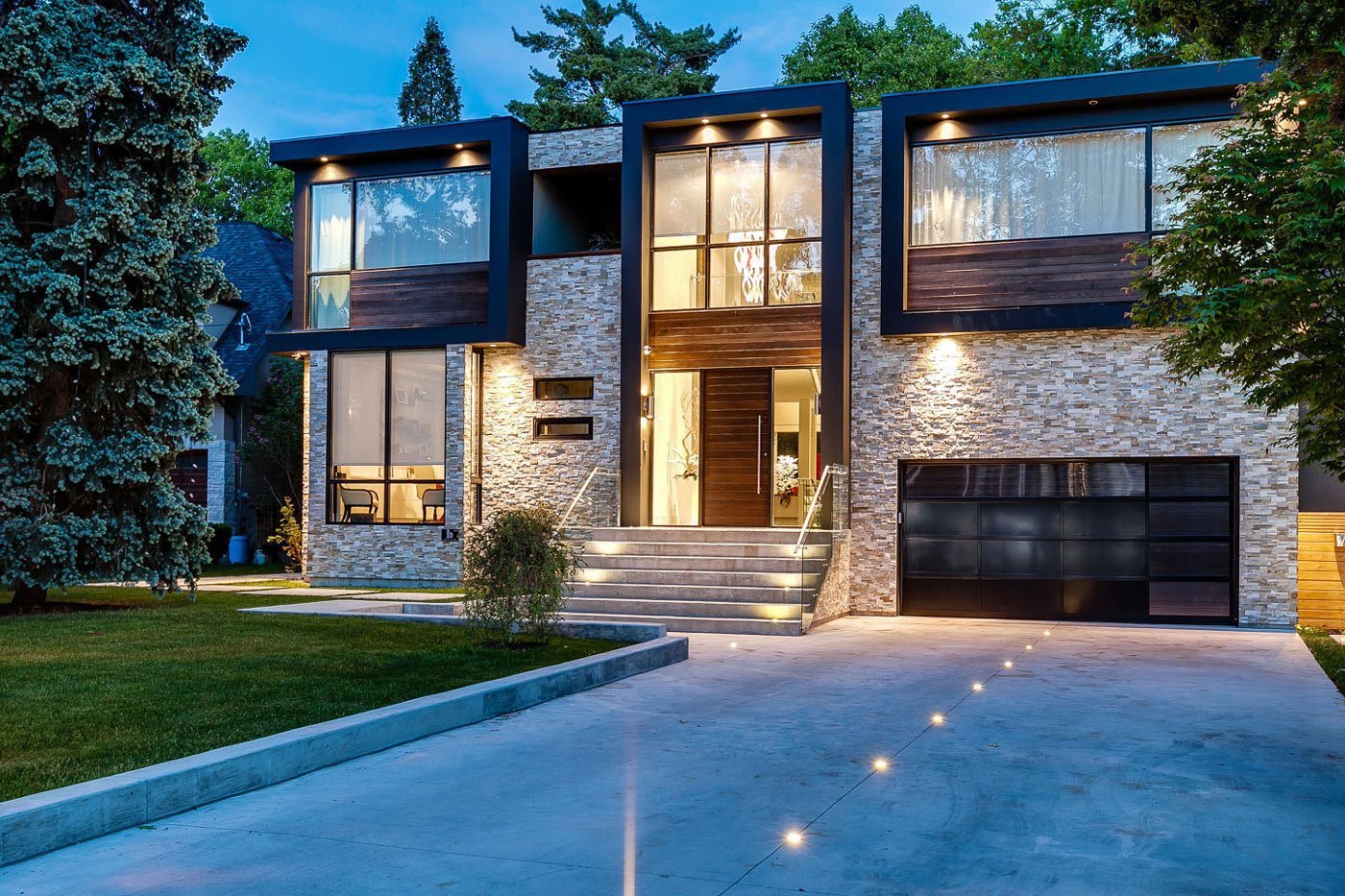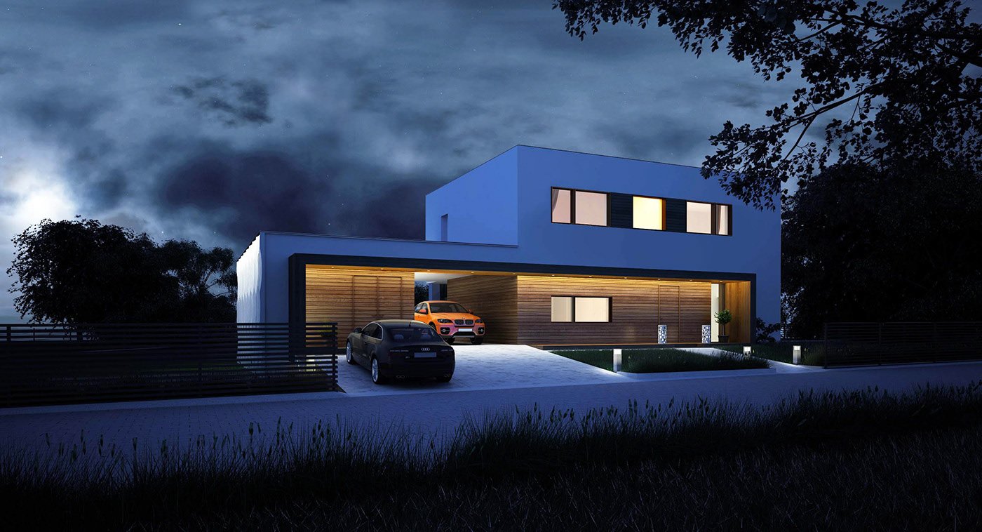 Двухэтажный дом с мансардной крышей и панорамными окнами