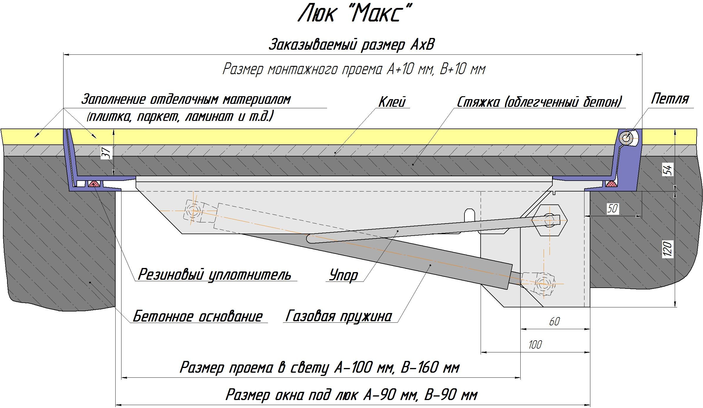 Люк напольный под плитку 600х600 чертеж