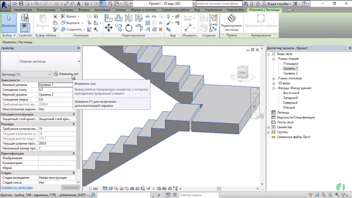 Revit проектирование лестницы