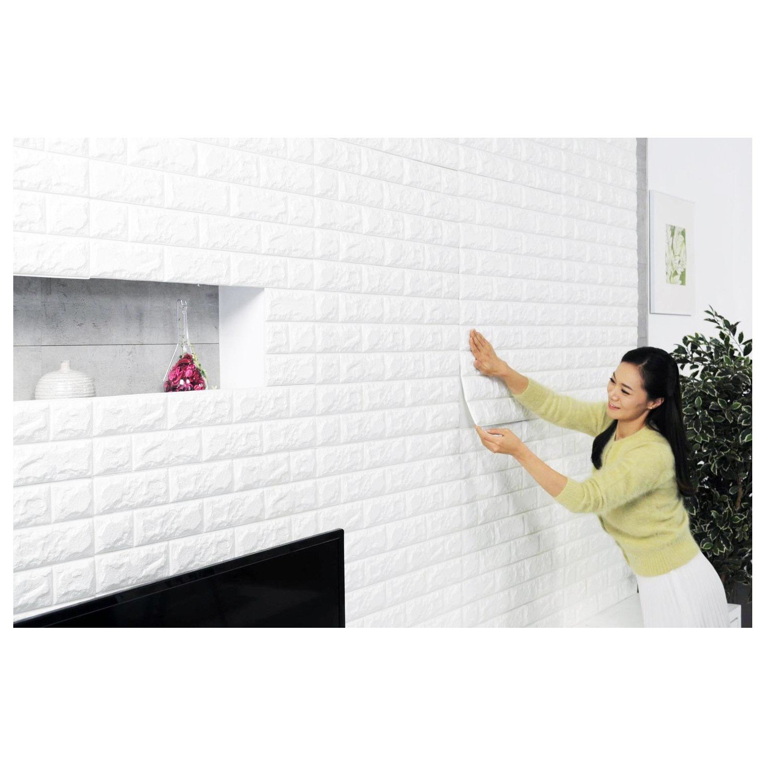 3d панели самоклеящиеся блок 20шт белый кирпич 76х71