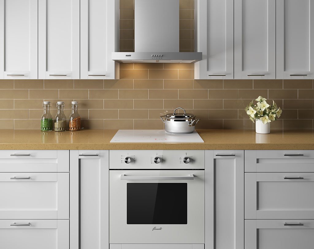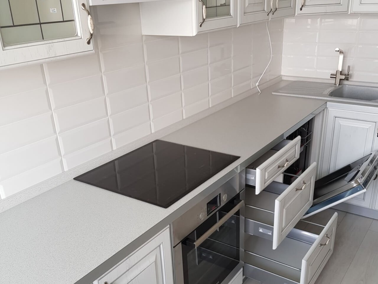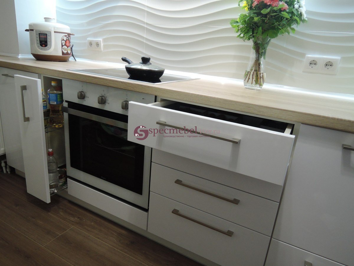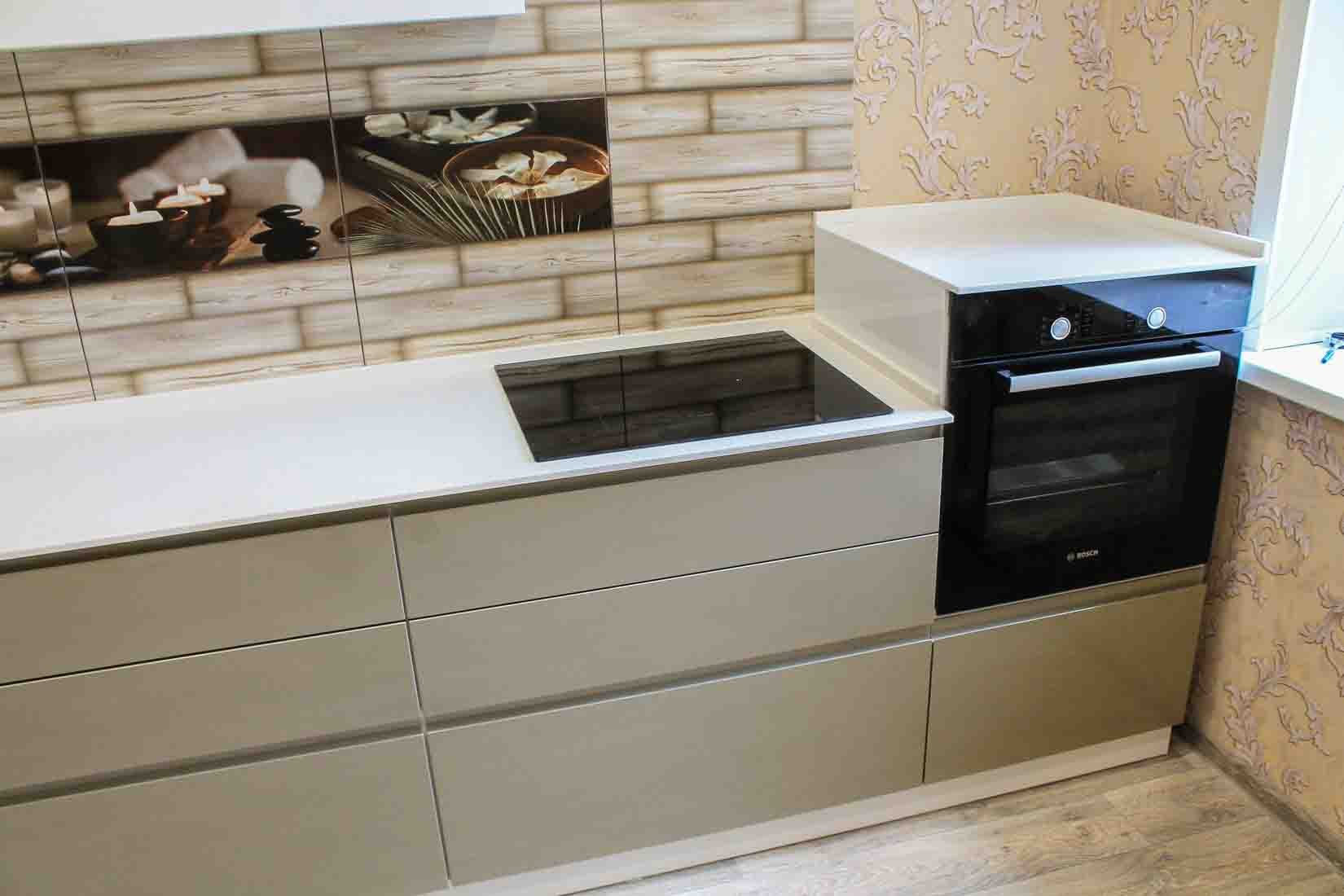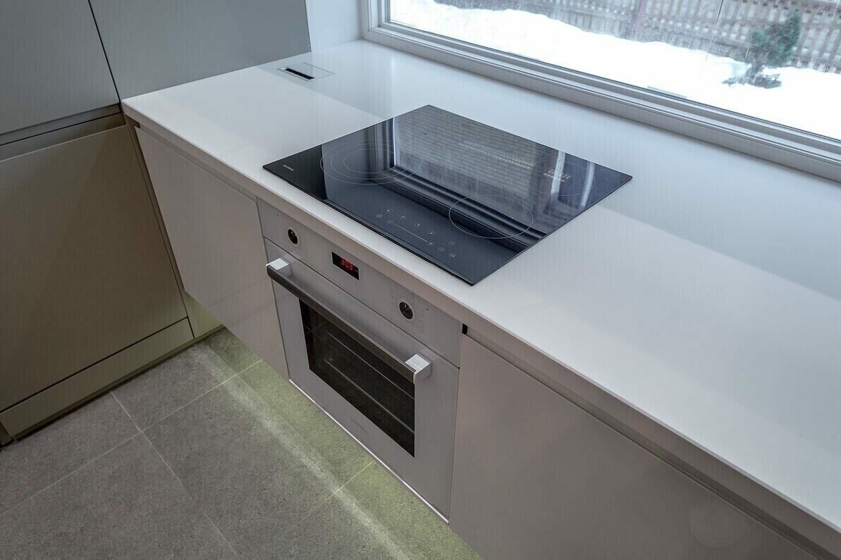 Кухня с белой варочной панелью и духовым шкафом