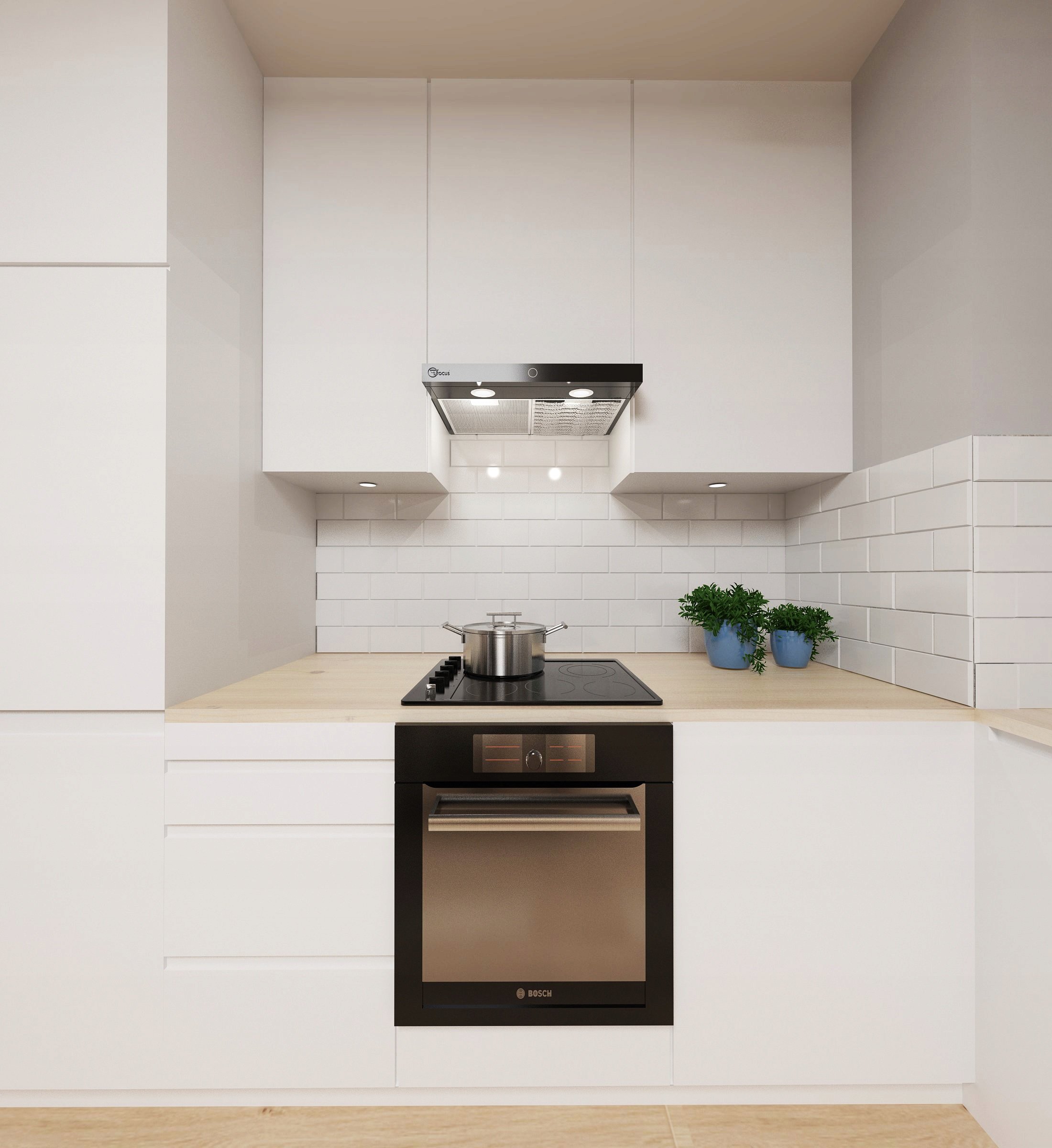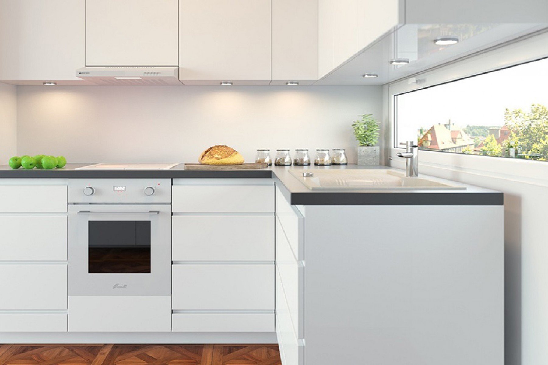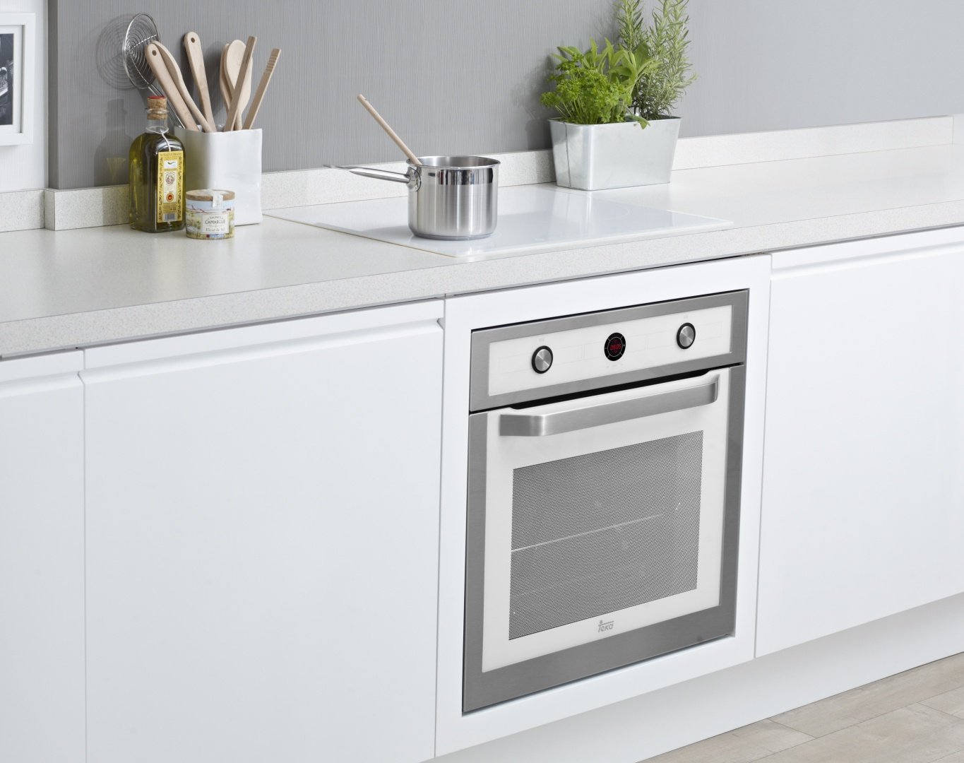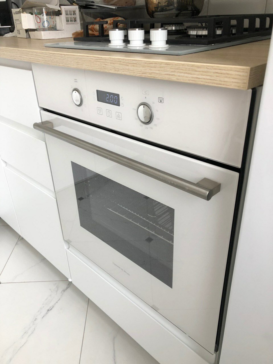 Кухня с белой варочной панелью и духовым шкафом