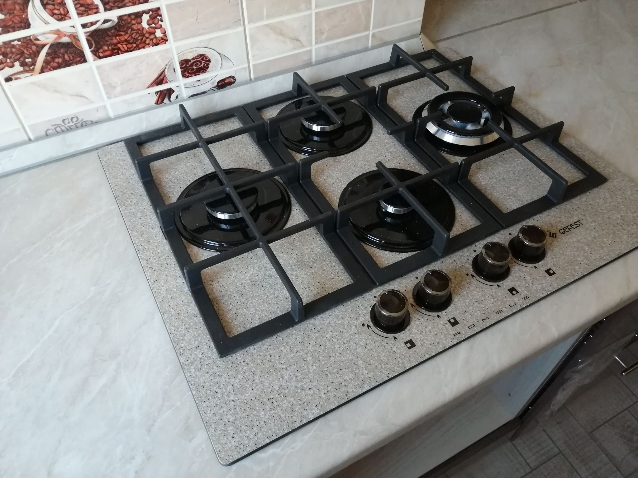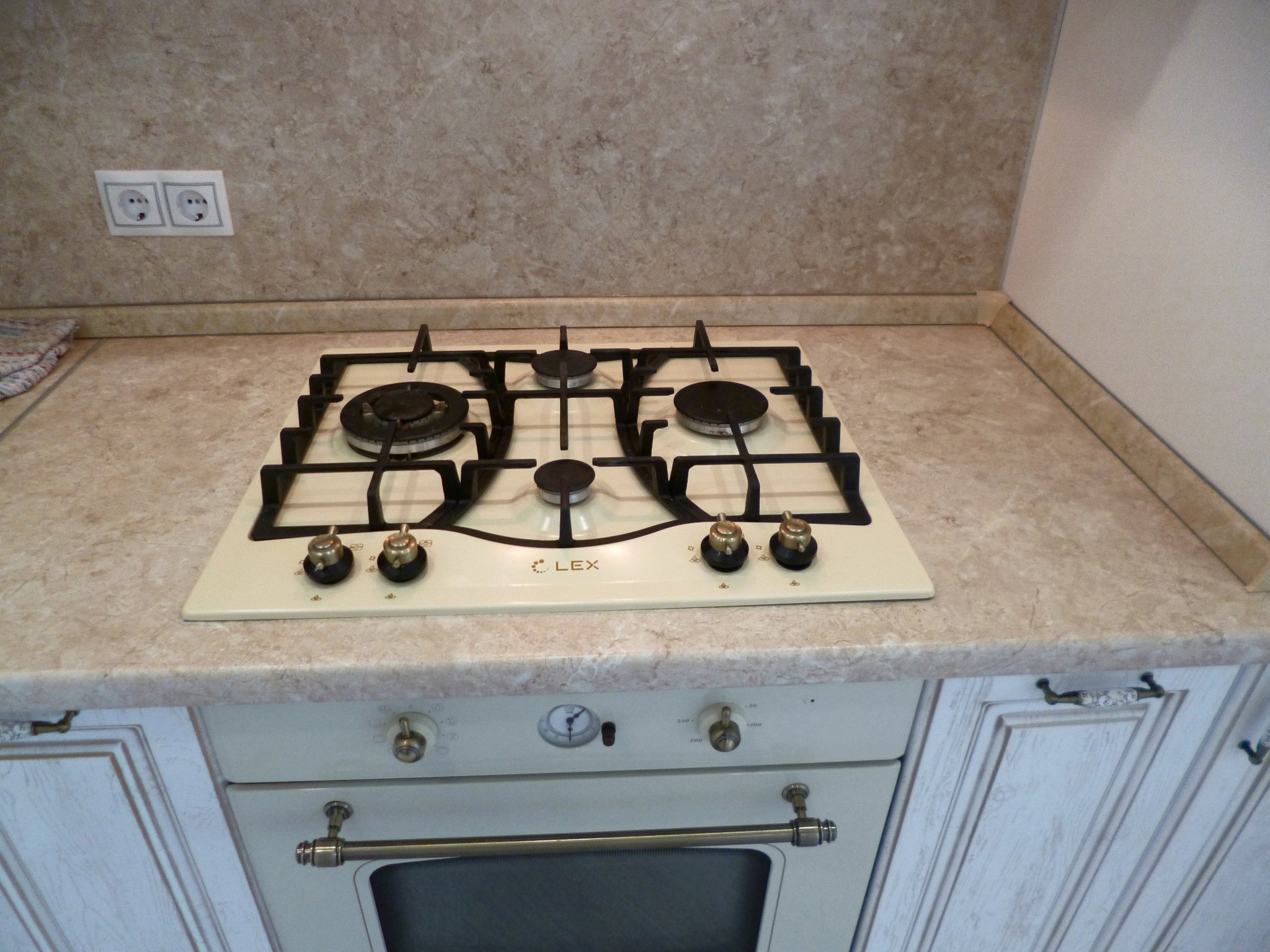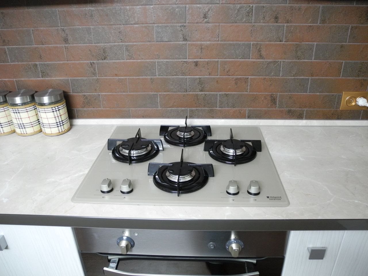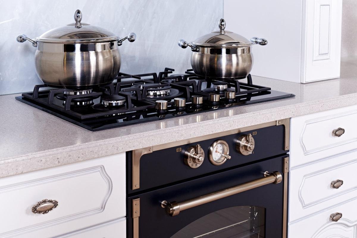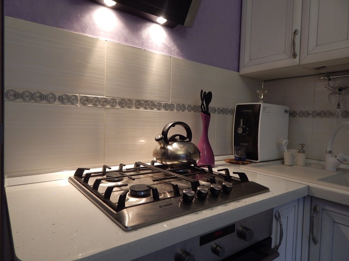 Белая газовая варочная панель в интерьере