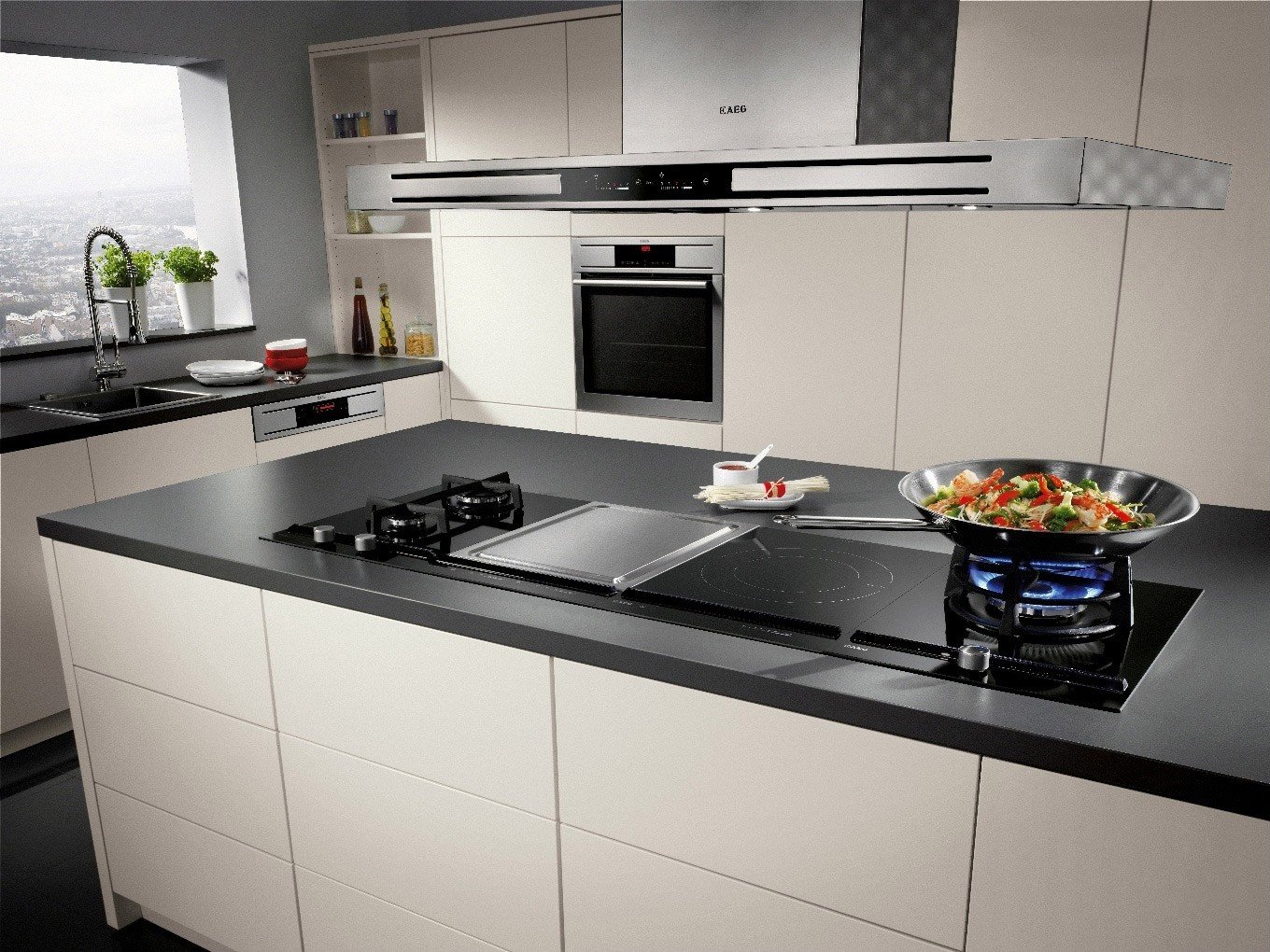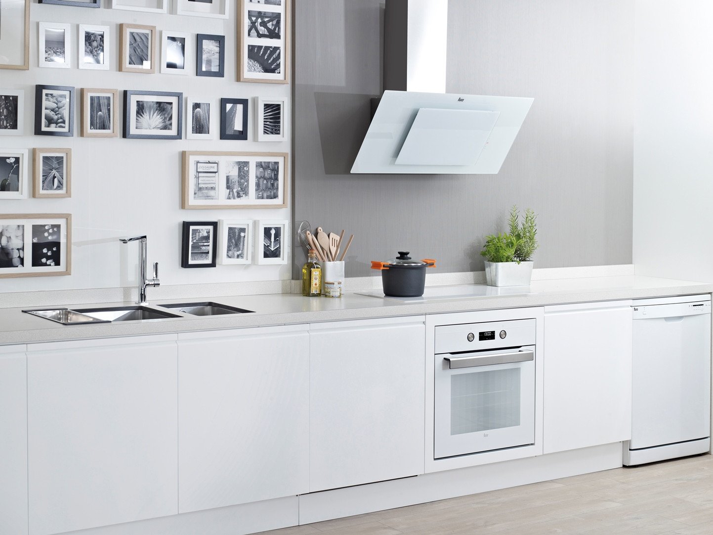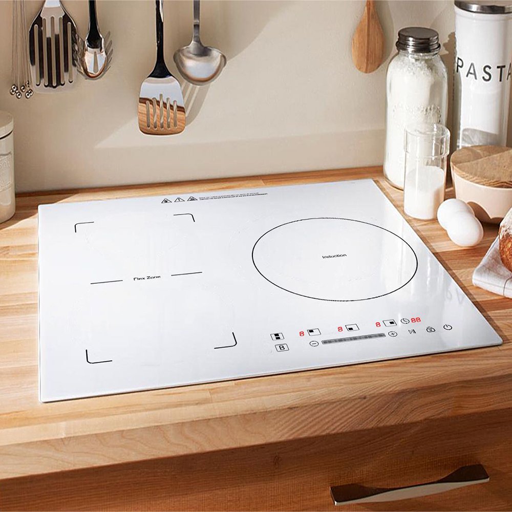 Белая варочная панель в интерьере белой кухни