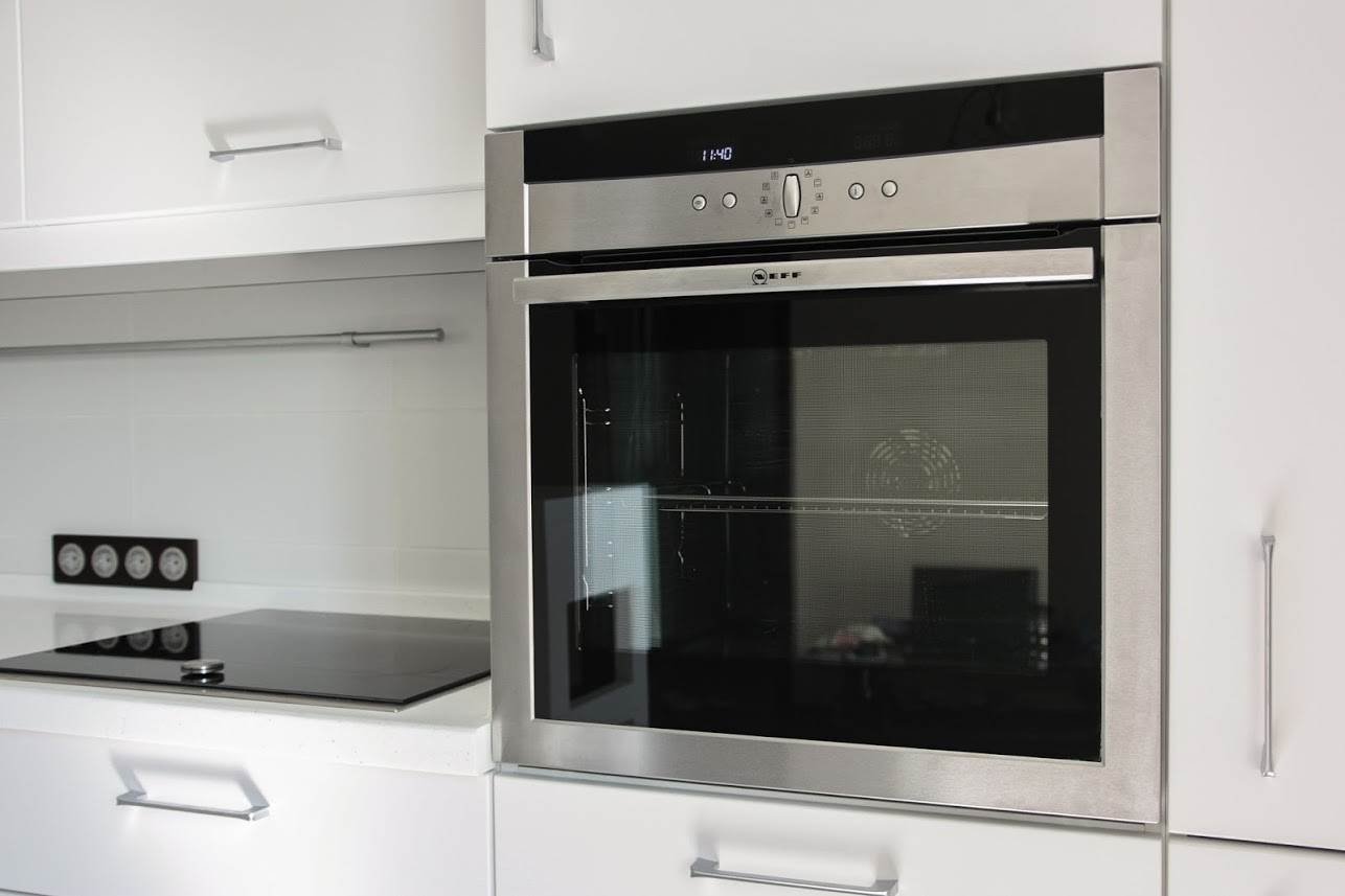 Духовой шкаф в белой кухне