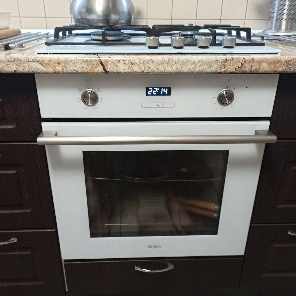 Белая духовка и черная варочная панель