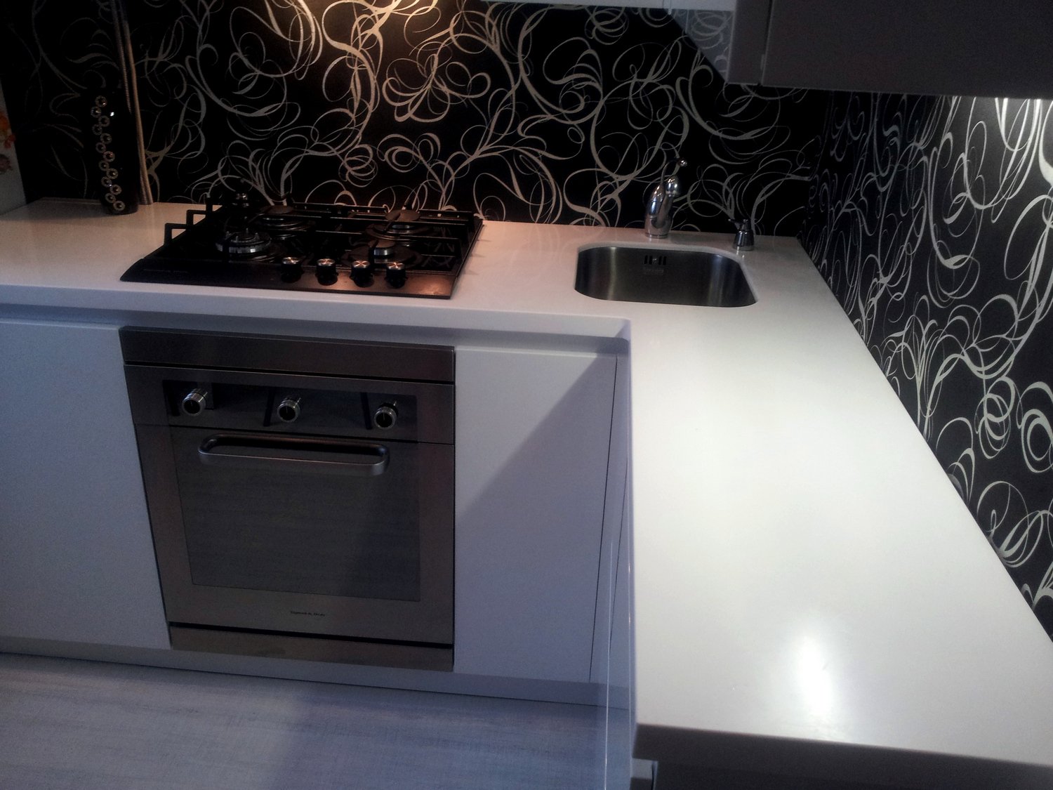 Белая варочная панель на черной столешнице