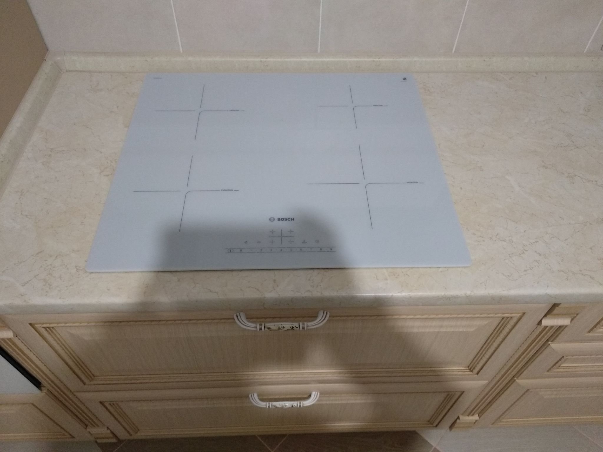 Варочная панель белая на белом мраморе