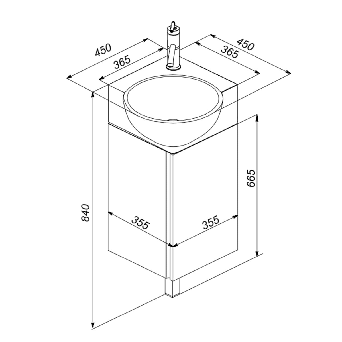 Раковина угловая с тумбой 500х500