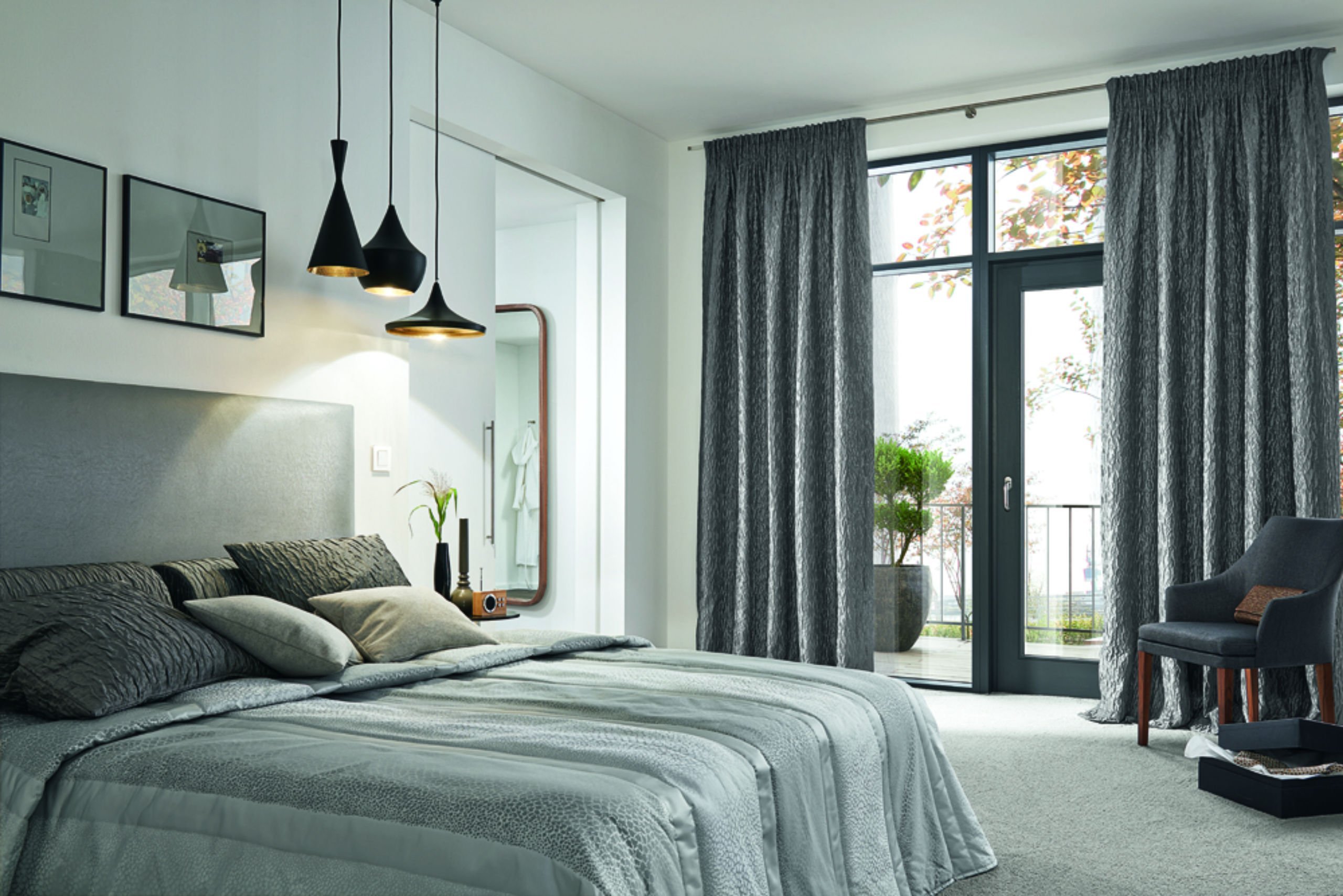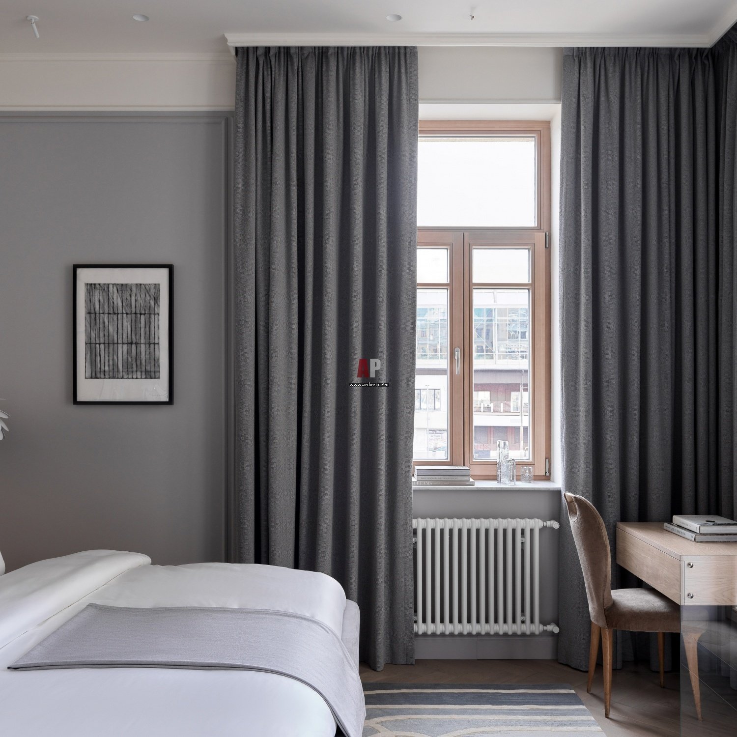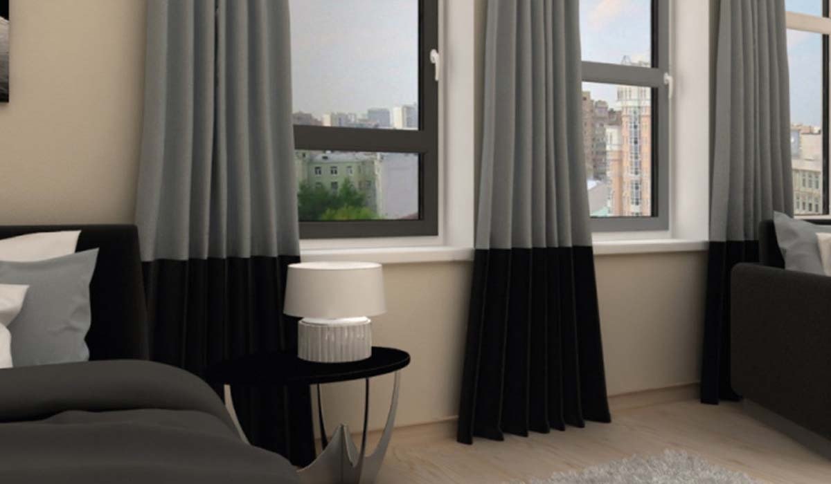 Серые шторы в спальне