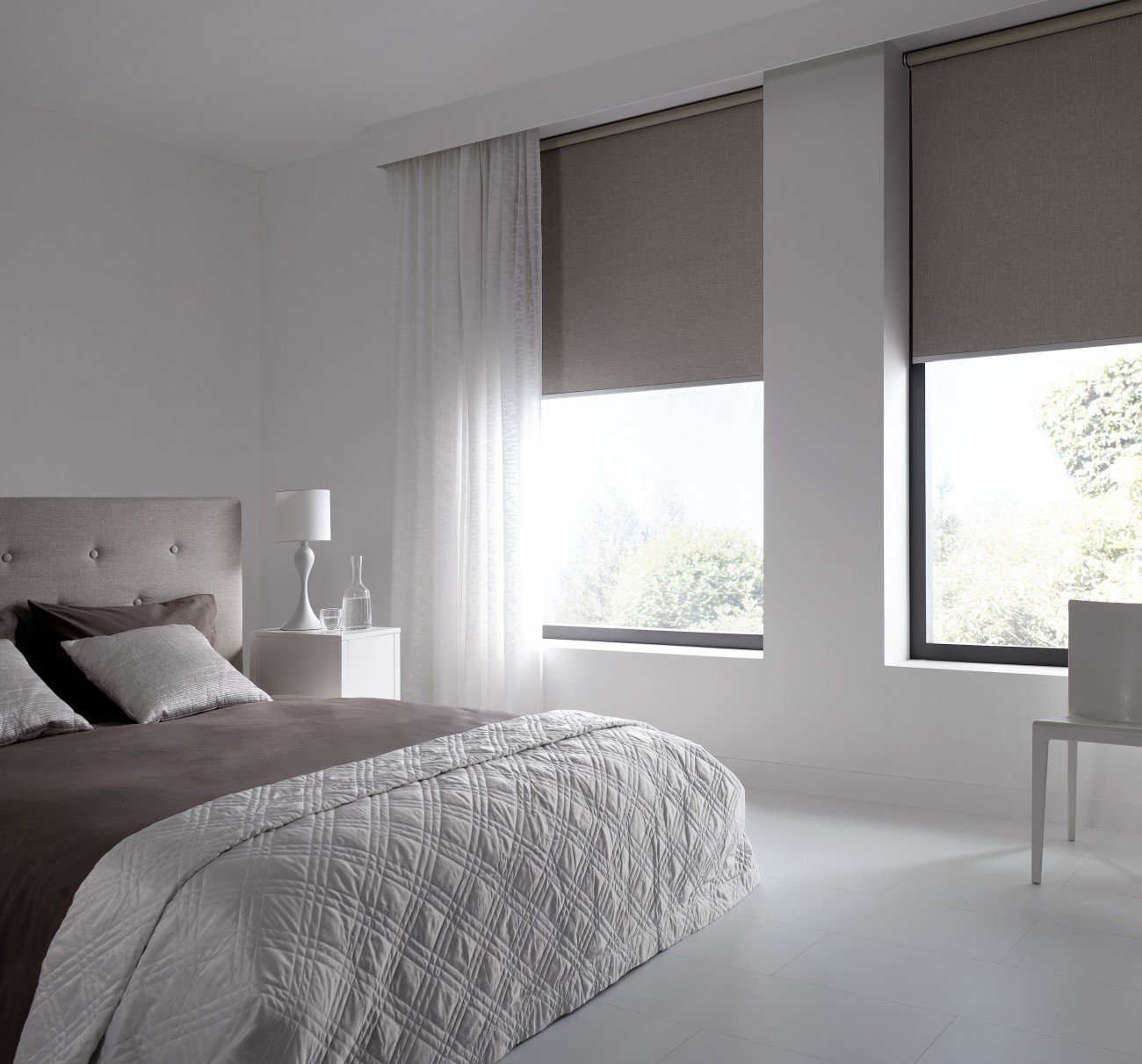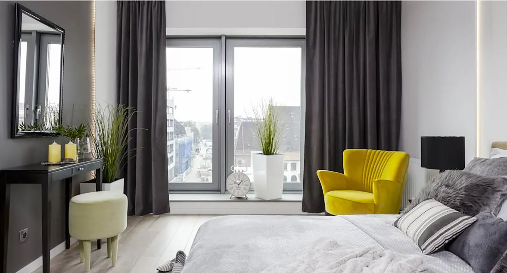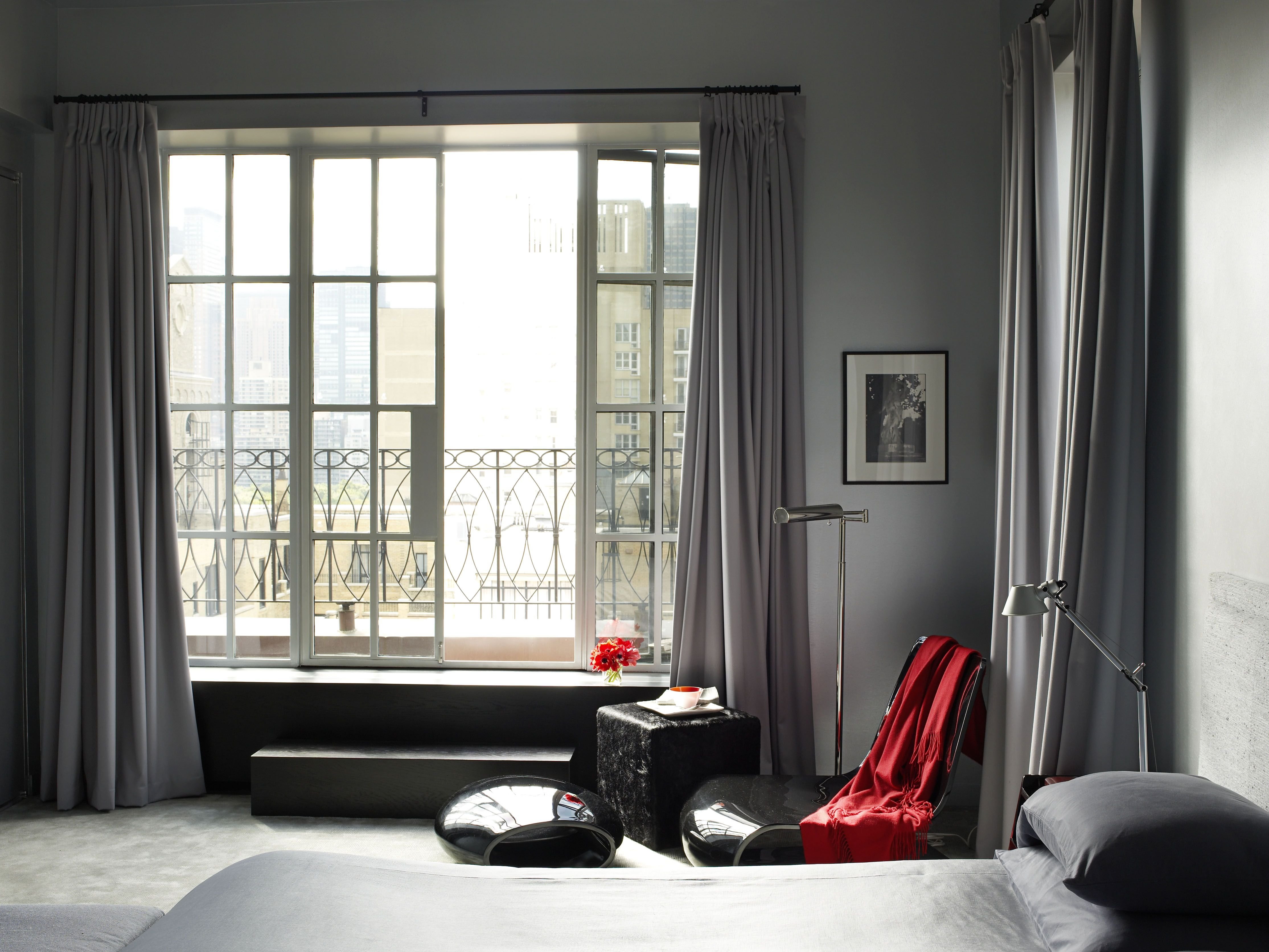 Серые шторы в спальне