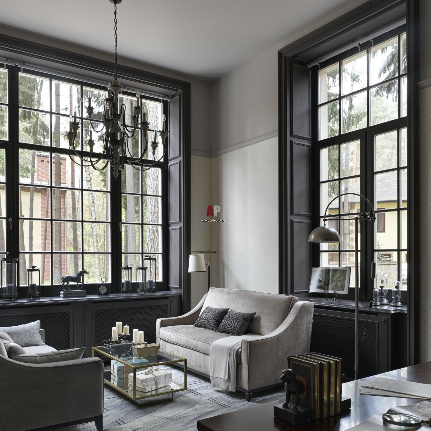 Черные и серые окна в интерьере