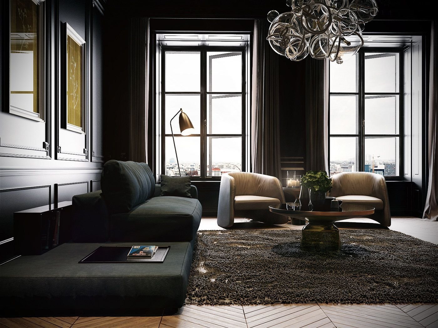 Темные окна в интерьере