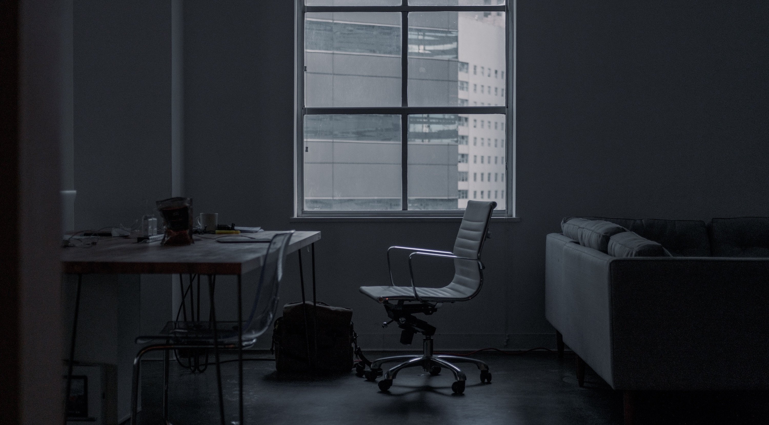 Стол в темной комнате