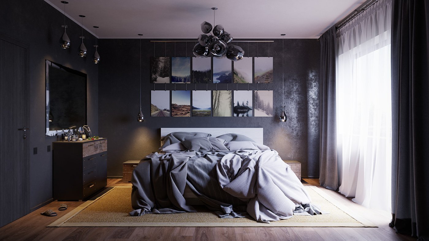 Темно серая спальня