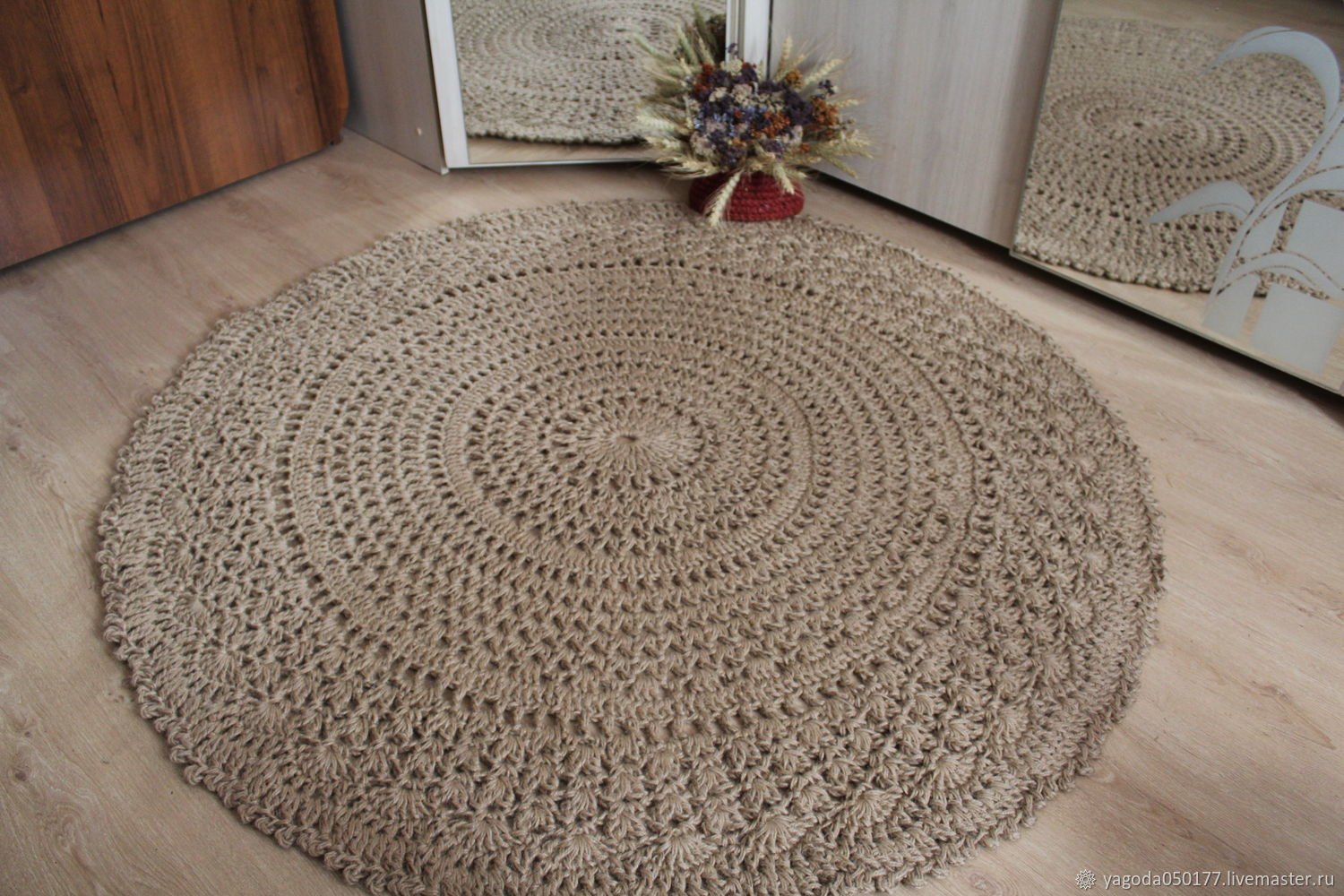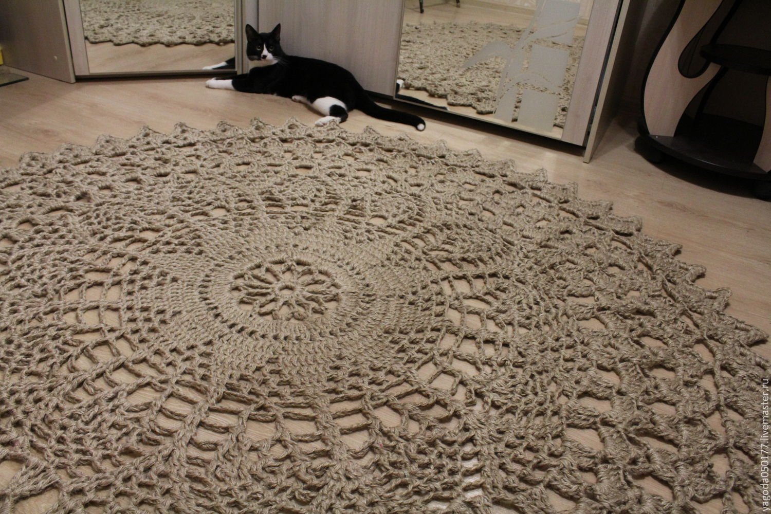 Круглый коврик из джута крючком