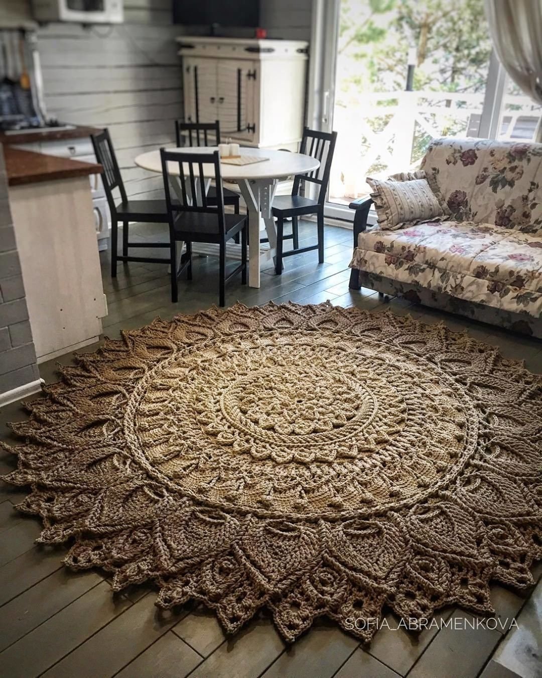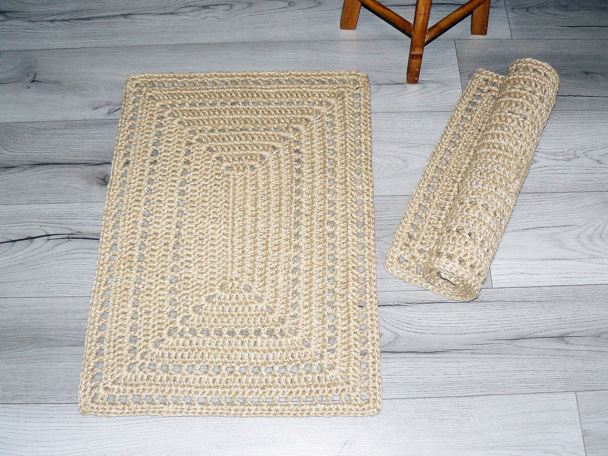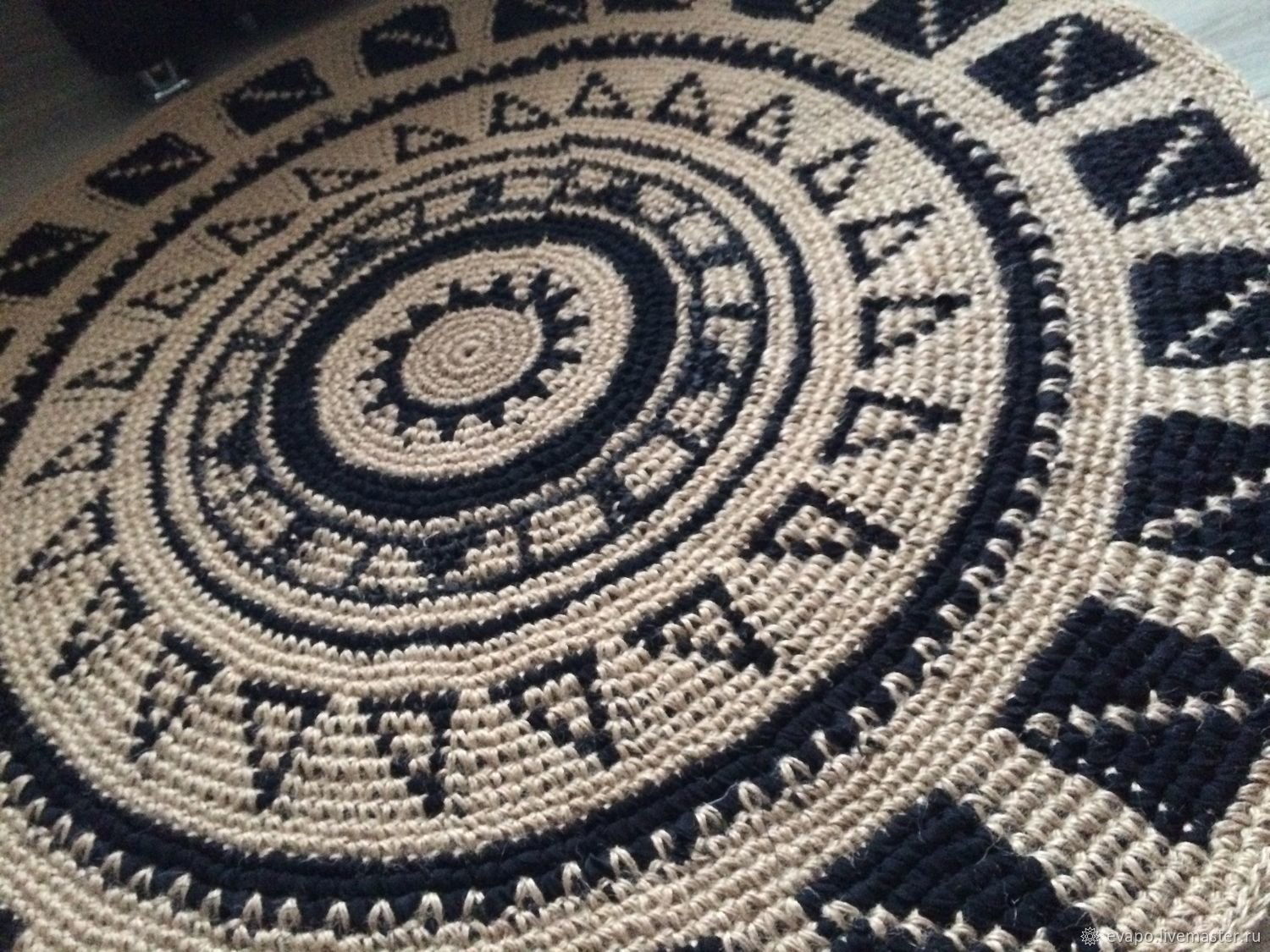 Ковер из джутовой пряжи крючком