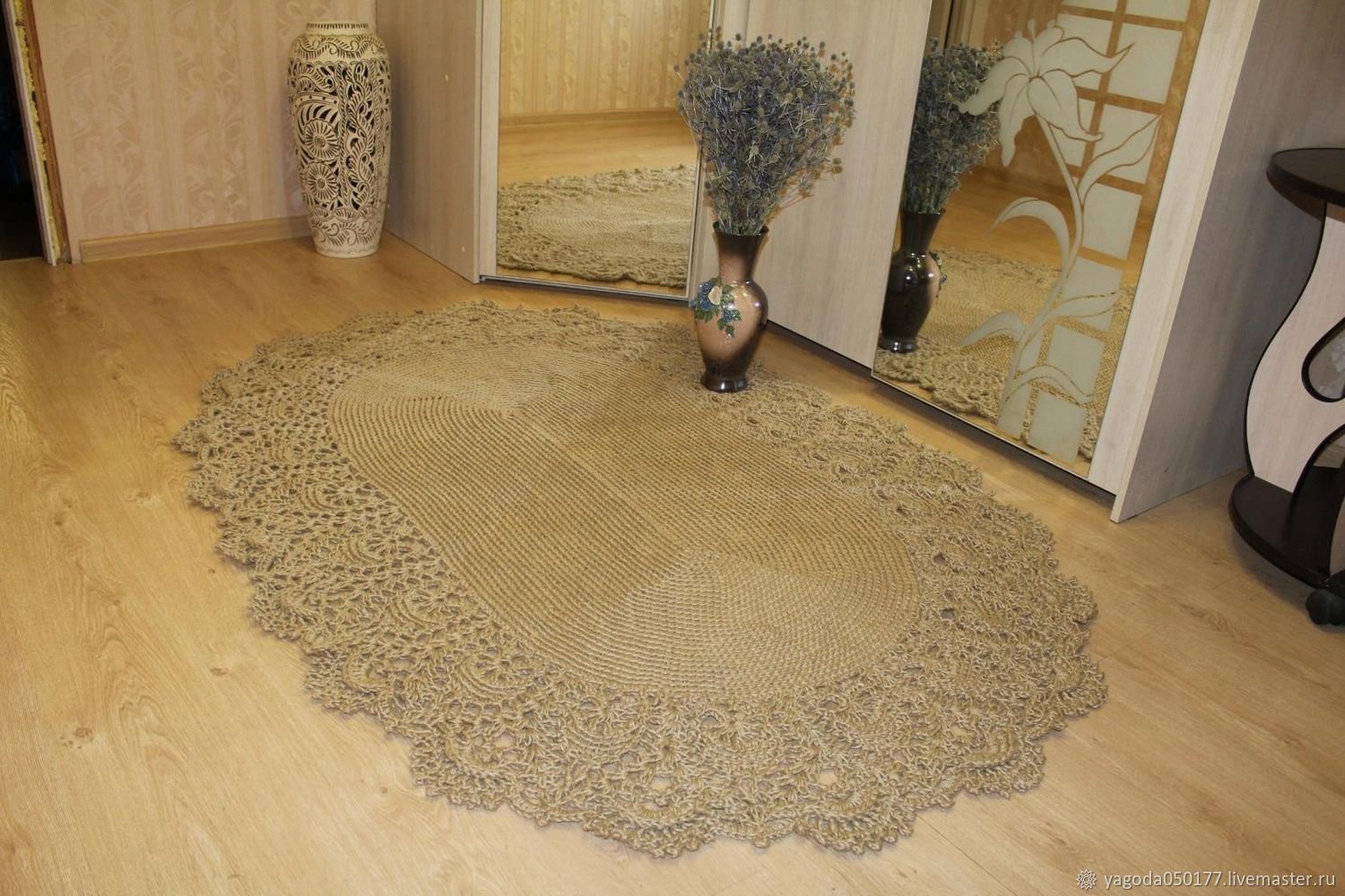 Джутовый коврик крючком овальный