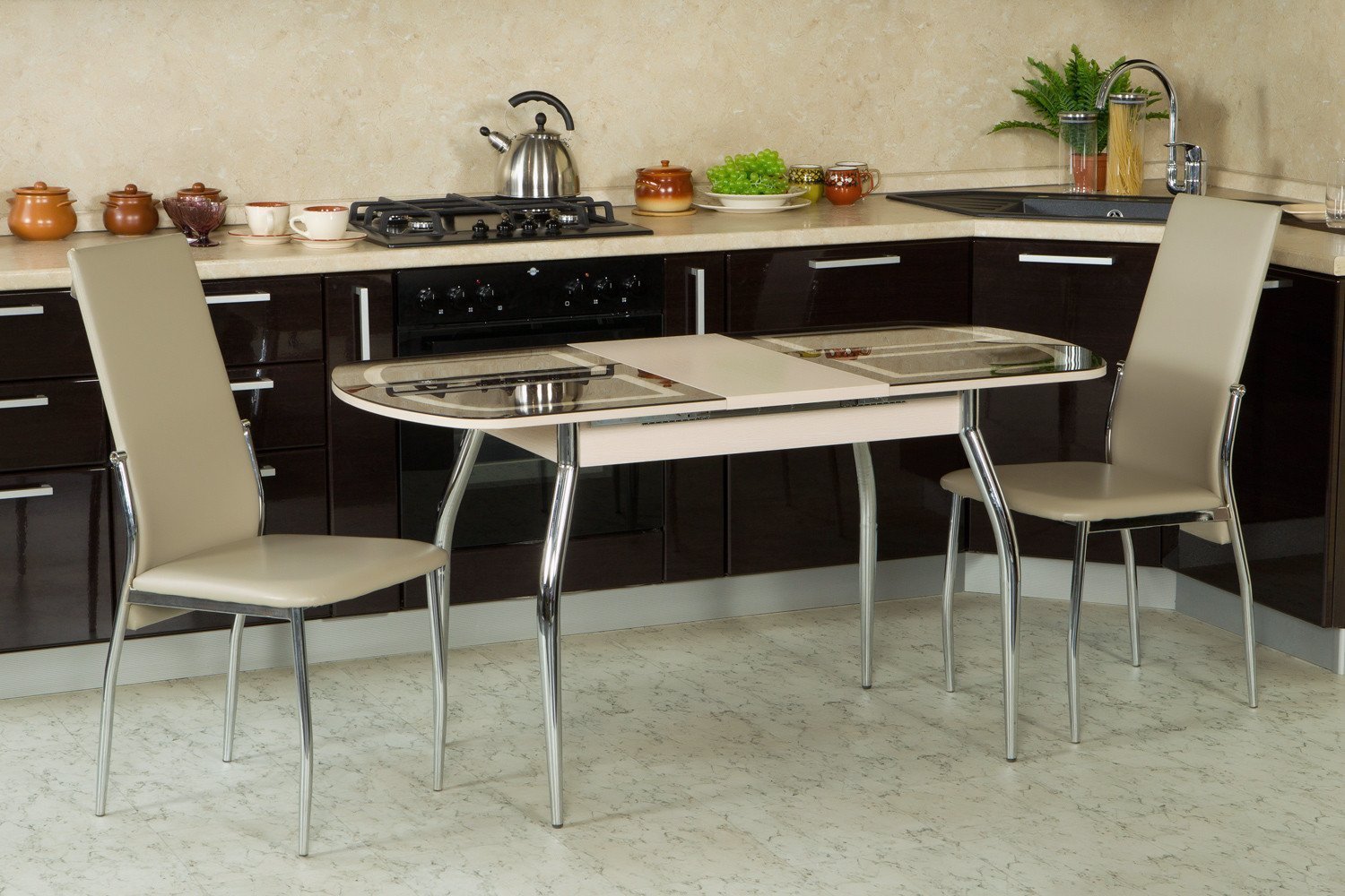 Стол стеклянный раскладной кухонный